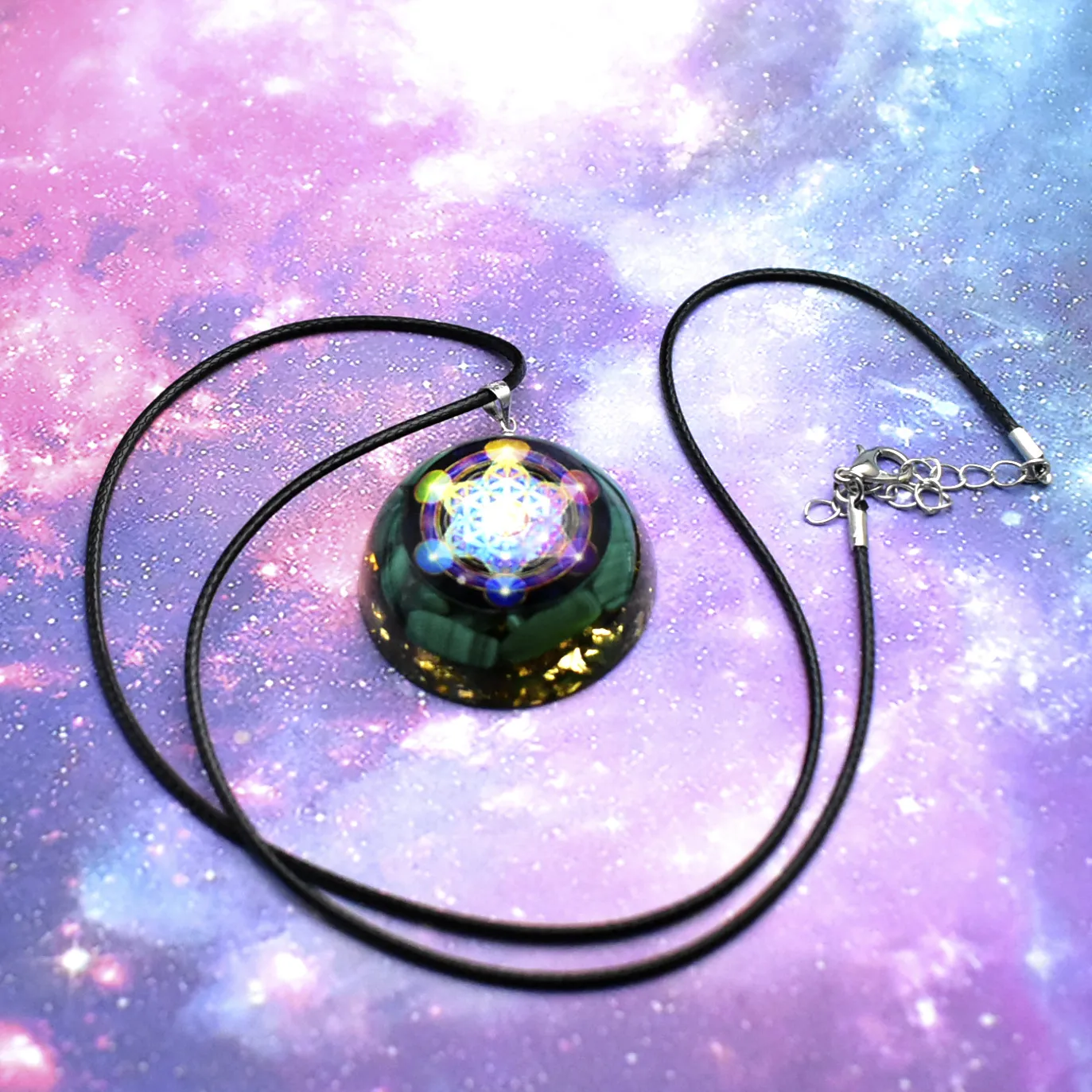 Archangel Rune Natural Crystal Epoxy Pendant Malachite Crushed Stone