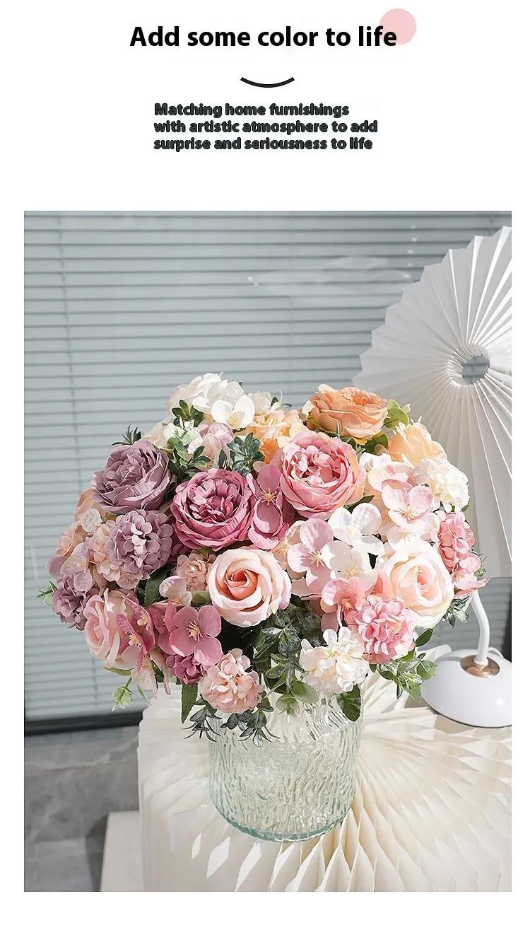 vibrant hues. Made with high-quality materials, these flowers closely resemble their natural counterparts, with each bloom showcasing a