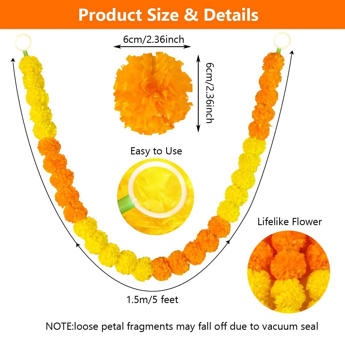 Versatile for Multiple Uses: Perfect for home décor, weddings, parties, religious festivals, or crafting, these marigold