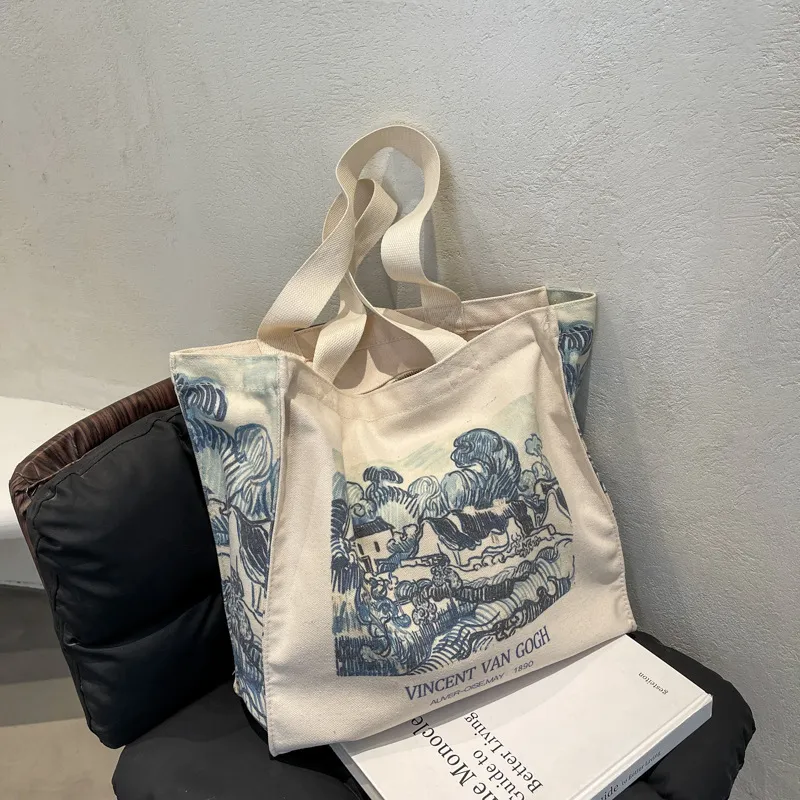 Artistic Oil Painting Simple Casual Portable Canvas Bag