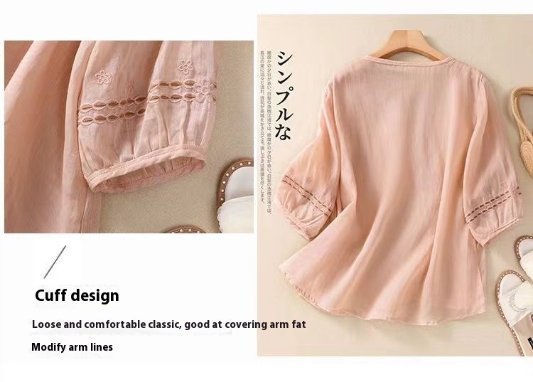 Artistic Vintage Cotton Linen Embroidered Shirt