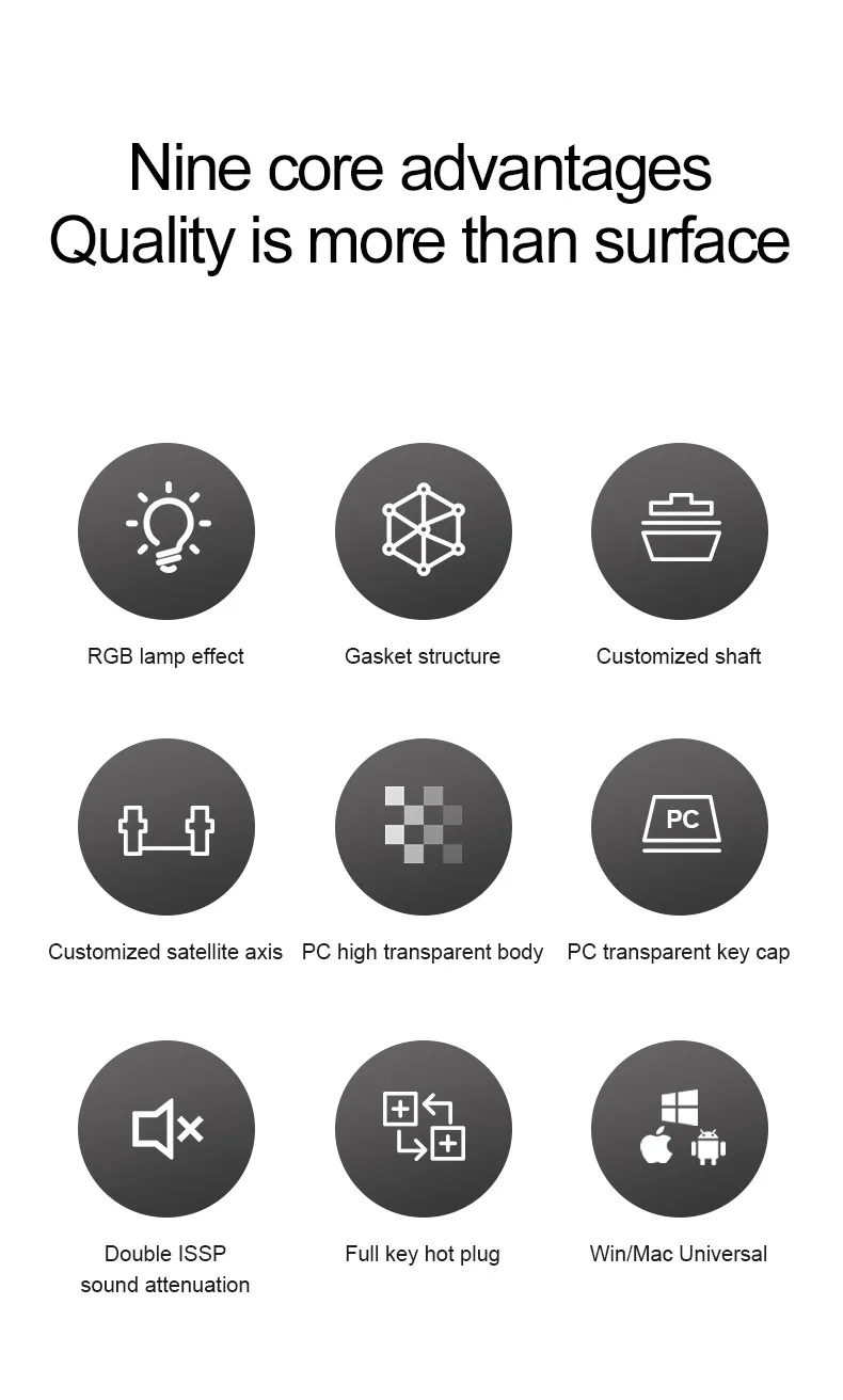 Package List: keyboard 1X data cable 1X key extractor 1X shaft 2X manual 1X receiver 1X dust cover 1X