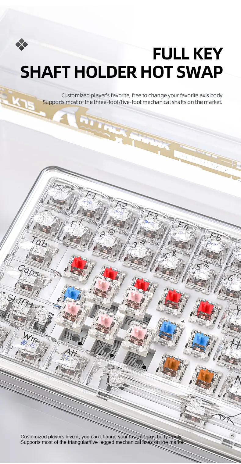 Color: Attack shark K75 White transparent RGB three template, attack shark K75 black transparent RGB three template