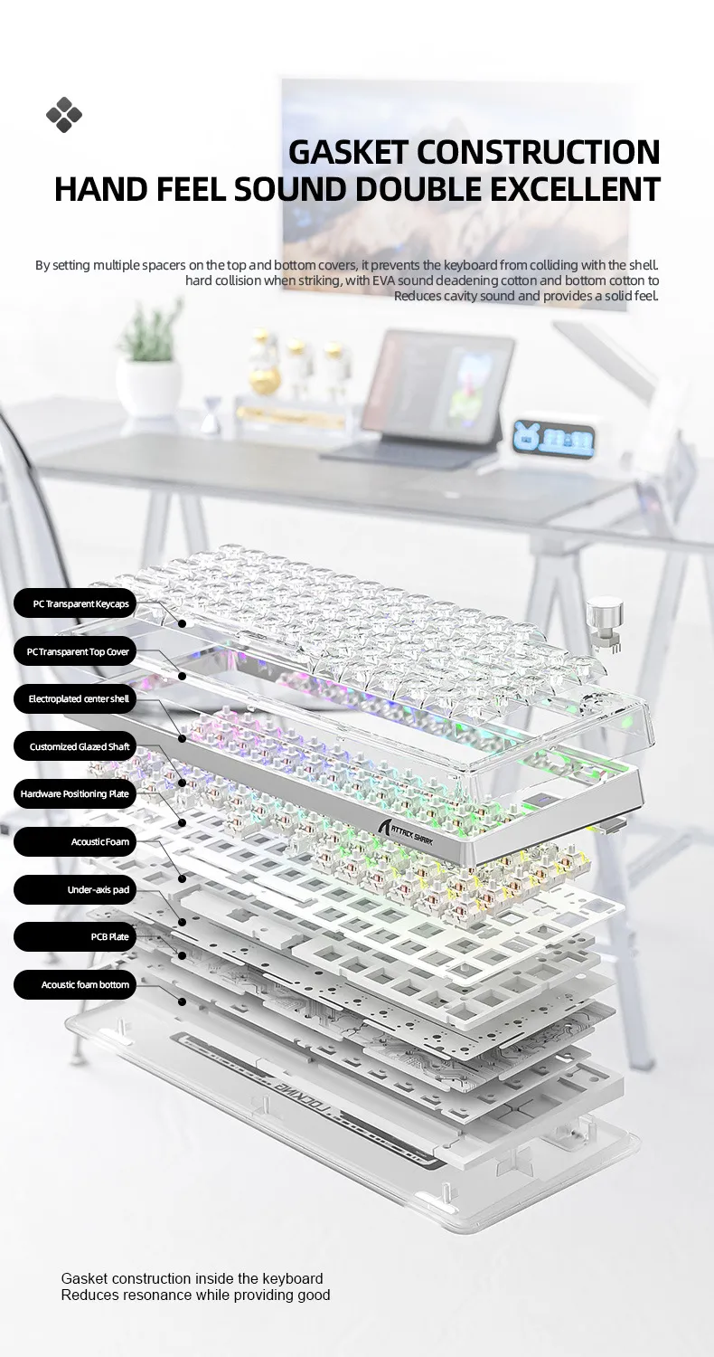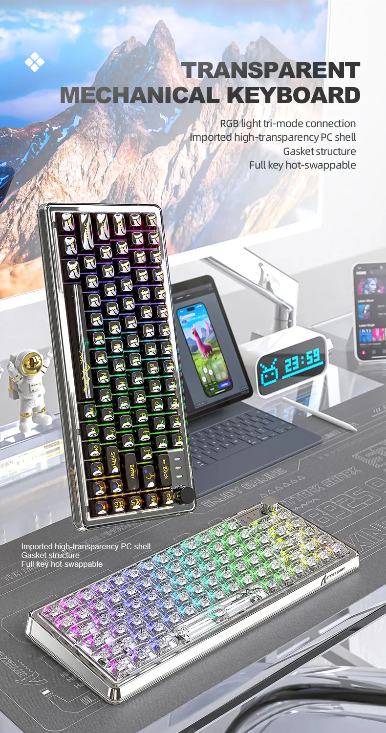 Attack Shark K75RGB Wireless Mechanical Bluetooth Transparent Gasket Hot Plug Keyboard