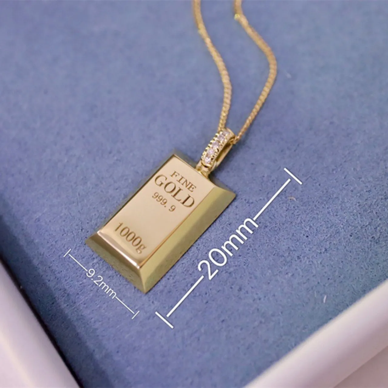 Au750 Gold Gold Bar Natural Diamond Pendant Necklace