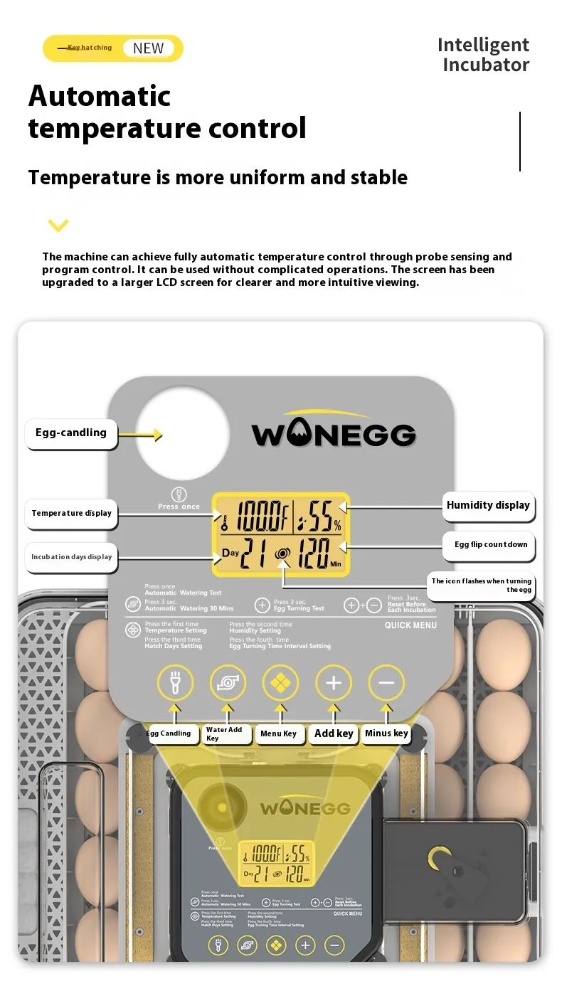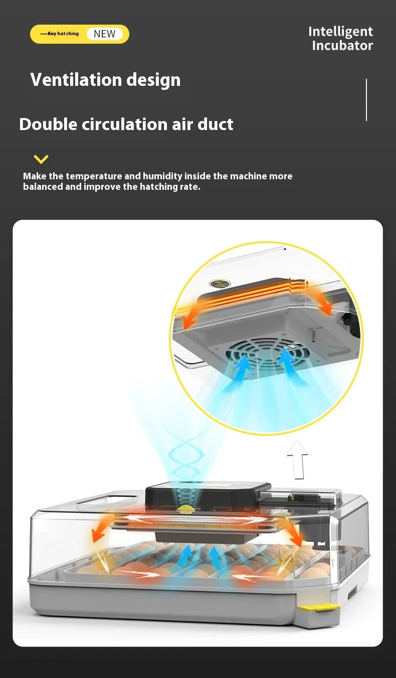 - Automatic Egg Turning: Eliminates manual rotation for consistent development.