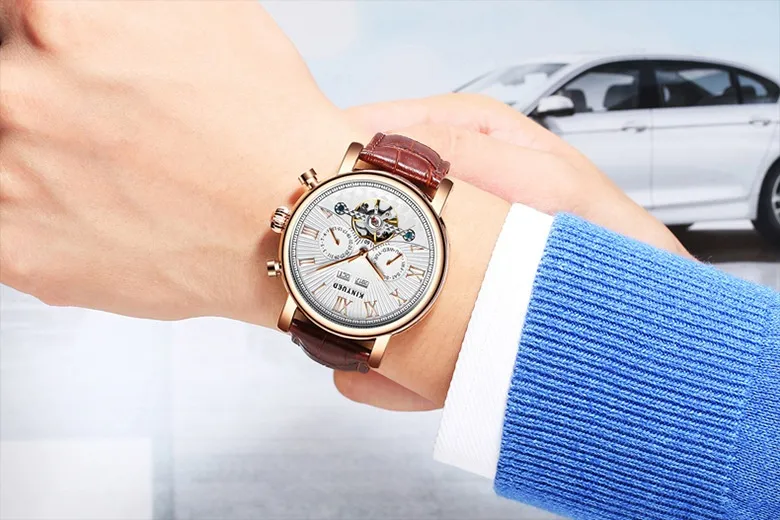 collection. Elevate your accessory game with the Automatic Mechanical Men's Authentic Leather Hollow Out Mechanical Watch, where elegance