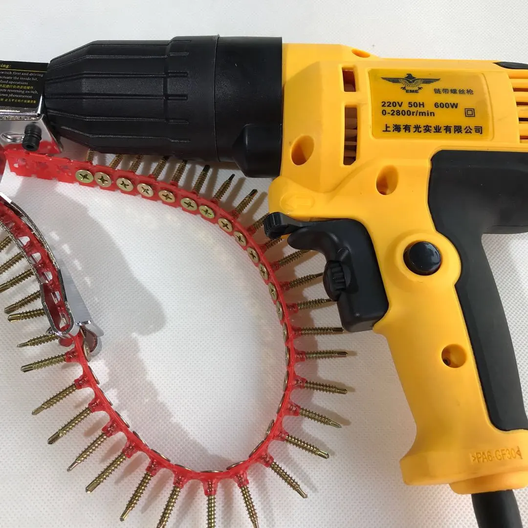 For convenience, the Automatic Nail Feeding Screw Grab Electric Chain Belt Screw Machine includes a quick-load magazine compatible with