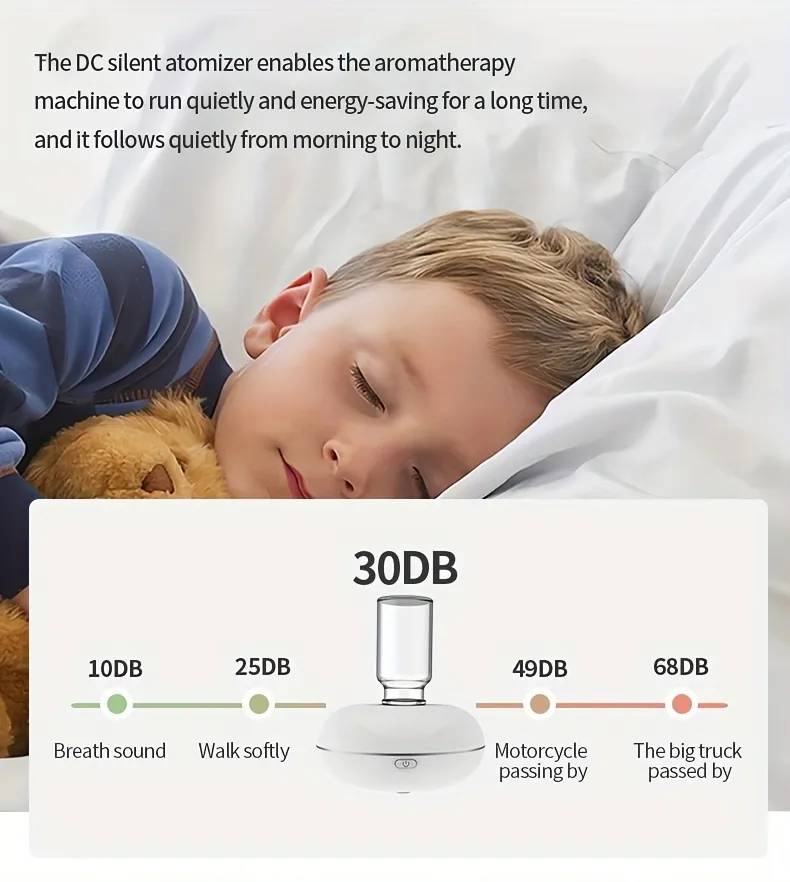 The aromatherapy machine allows you to adjust the intensity of the fragrance. Whether you want a light, subtle scent or a stronger aroma, this feature lets you control the level of diffusion according to your preferences.