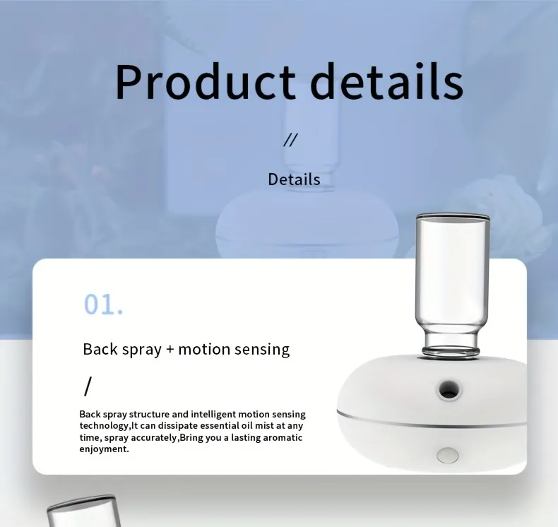 Ideal for use in bedrooms, living rooms, bathrooms, and small spaces, this inverted aromatherapy machine is a perfect solution for maintaining a soothing atmosphere in your home without the hassle of manual controls.