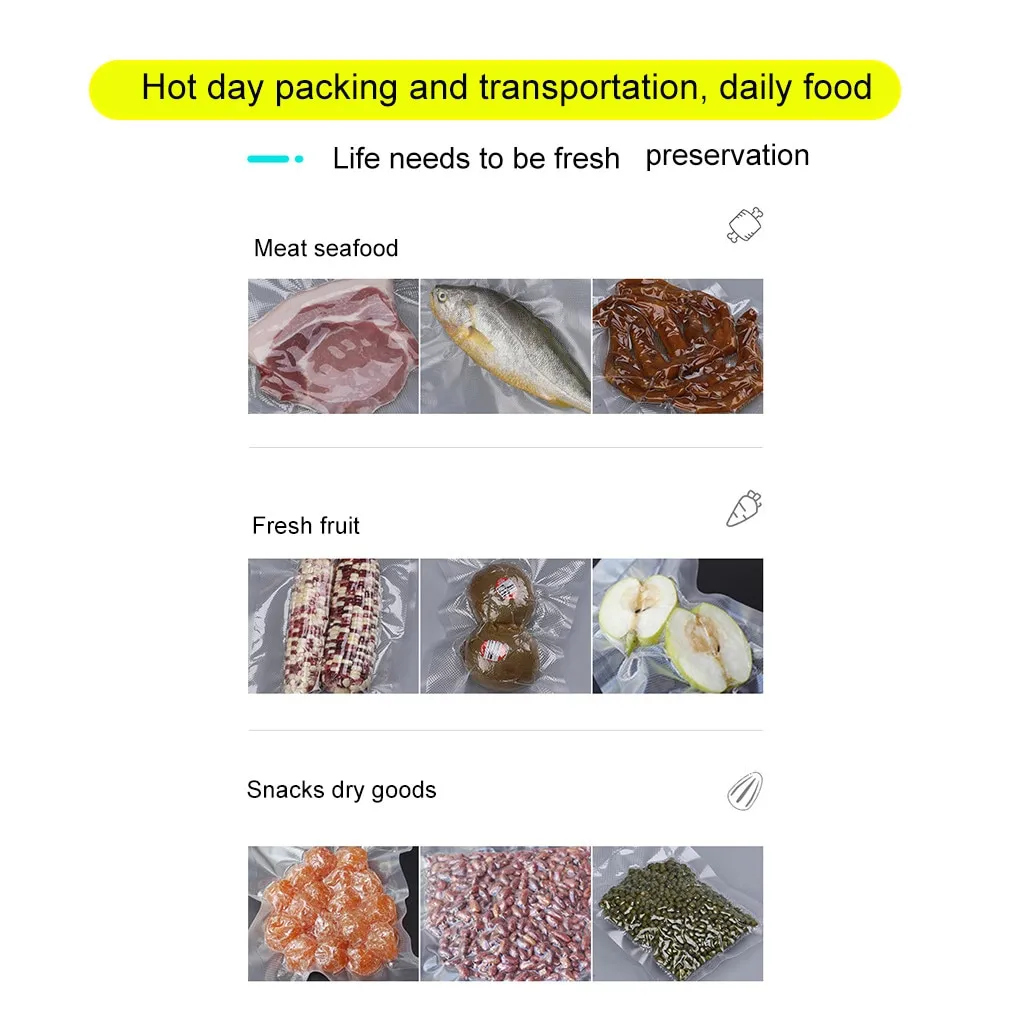 - Food Preservation: Ideal for storing fresh produce, meats, seafood, snacks, and baked goods.