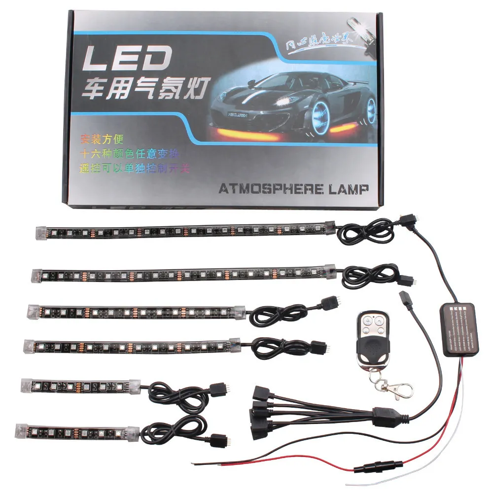 Automobile and motorcycle modified universal one for six LED remote control lights RGB atmosphere lights decorative lights atmosphere lights car decoration