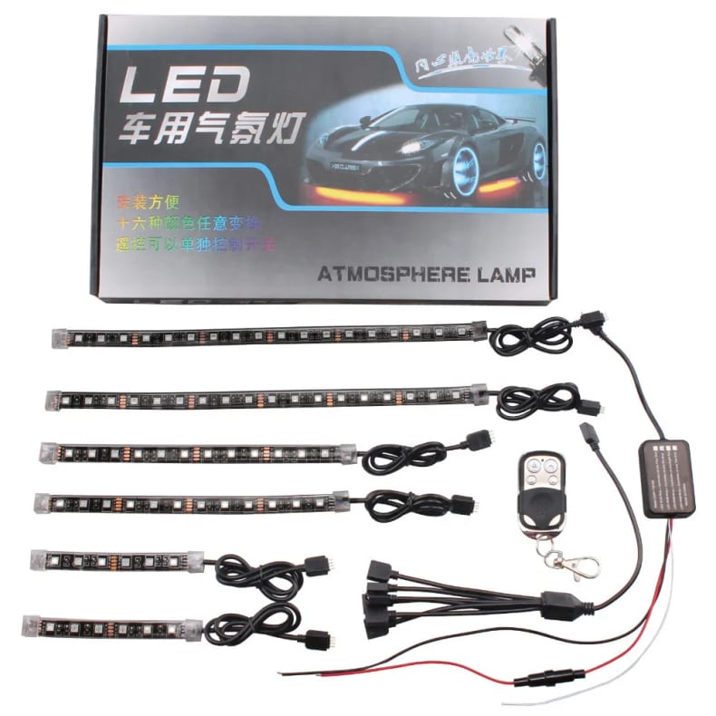 Automobile & Motorcycle 6-in-1 LED RGB Atmosphere Lights – Remote Control Decorative Lighting
