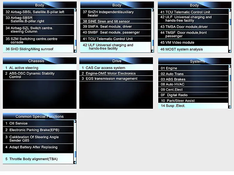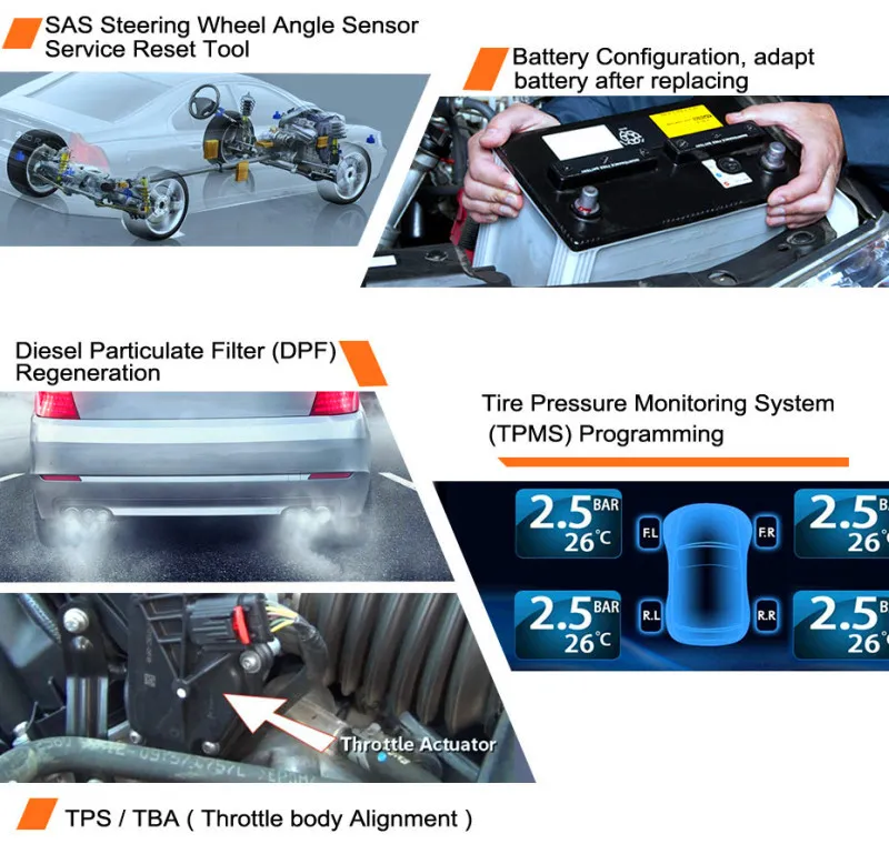 DPF regeneration, ABS bleeding, BCM/SIR setup, TPS/TBA (Throttle body alignment) , etc.