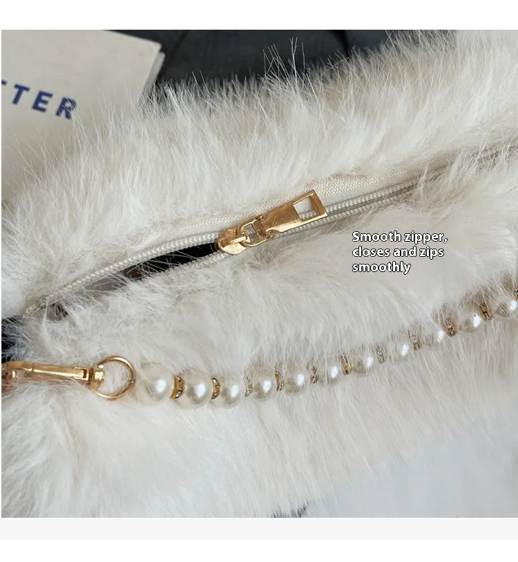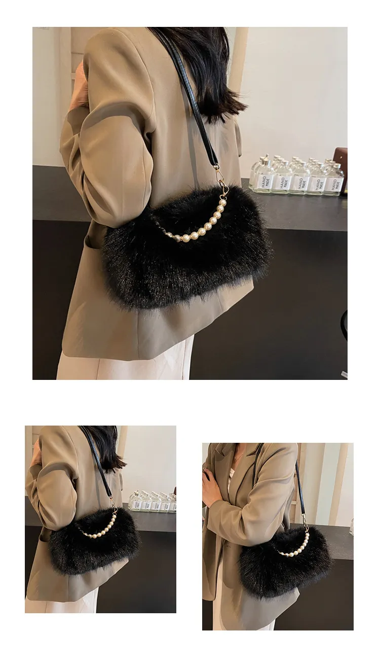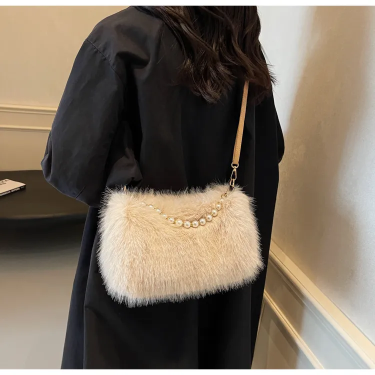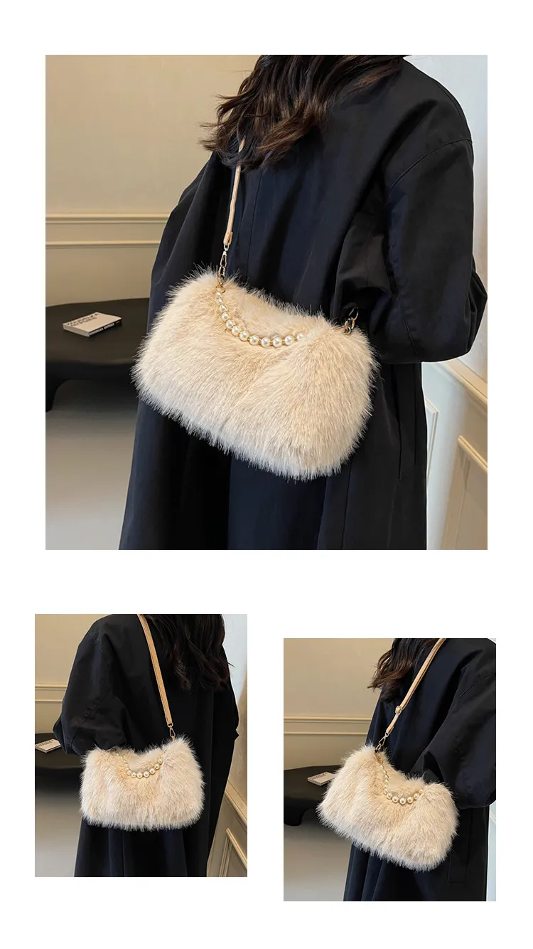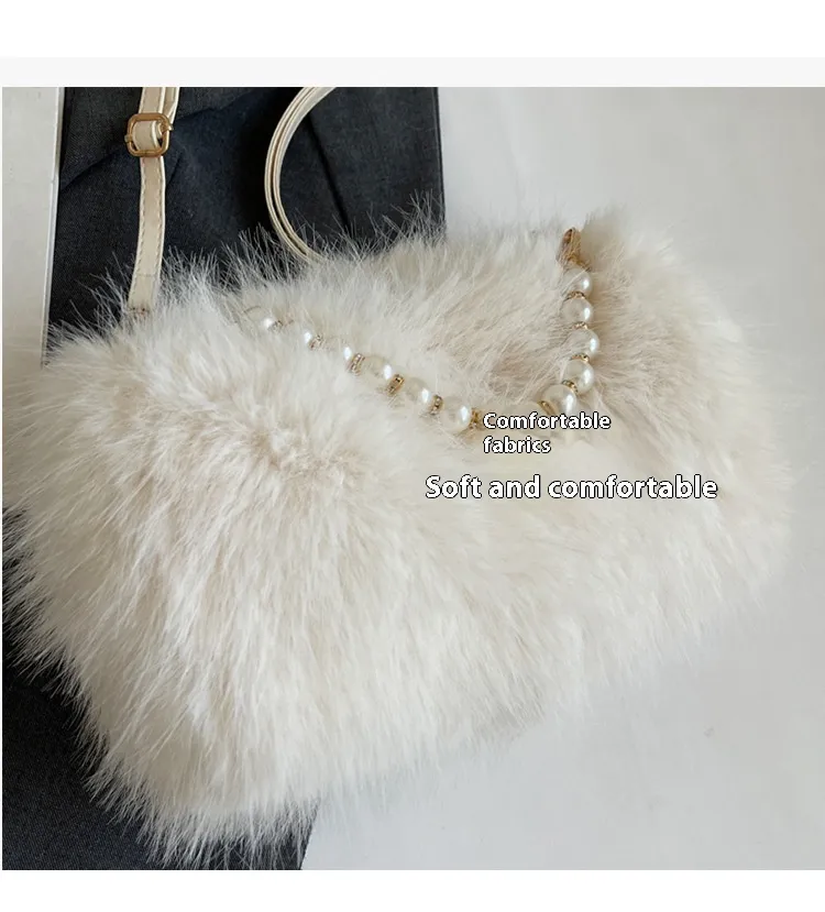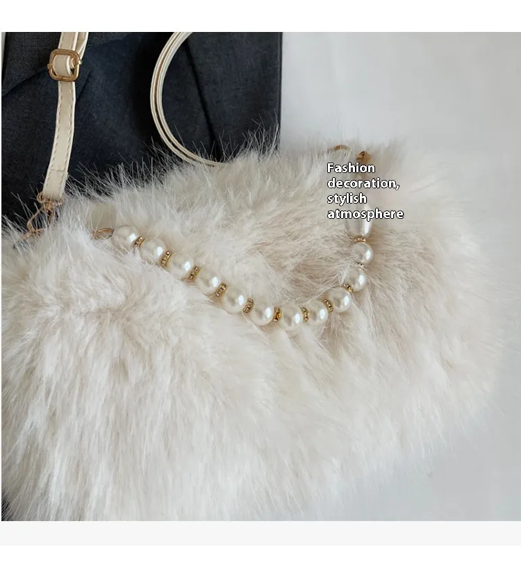 Description – Autumn And Winter Fashion Shoulder Bags Pearl Chain Crossbody Bag Versatile Commuting Armpit Plush Female Bag