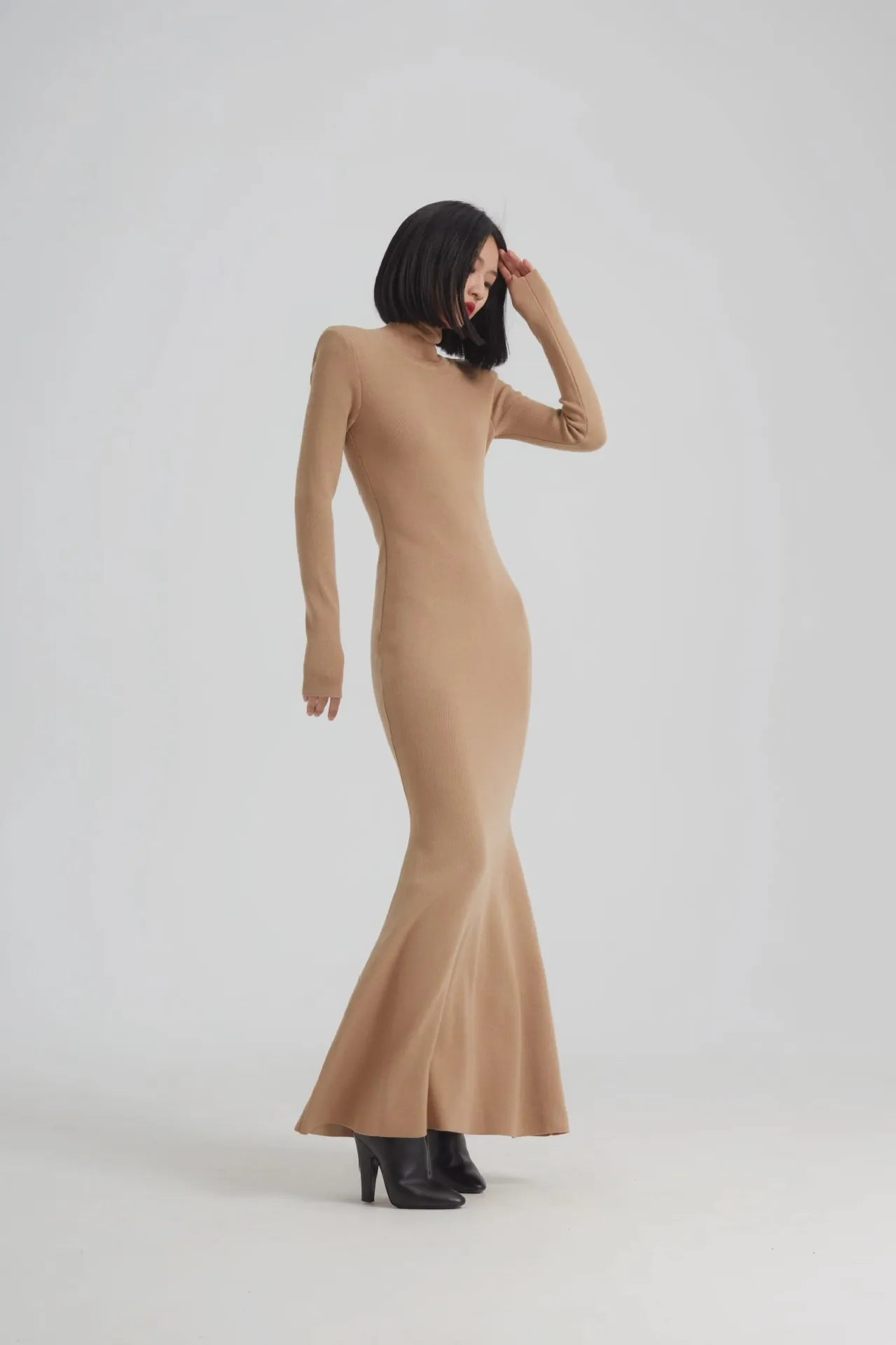 Crafted from high-quality wool blend, this fishtail skirt dress combines softness with durability, ensuring you stay comfortable throughout the day. The fitted sheath silhouette elongates the body, while the fishtail hem adds a touch of elegance and movement. Whether paired with boots for a casual day look or styled with heels for an evening out, this versatile dress transitions effortlessly between day and night. The natural warmth of the wool makes it an essential addition to your cold-weather wardrobe, allowing you to stay stylish without compromising on comfort.