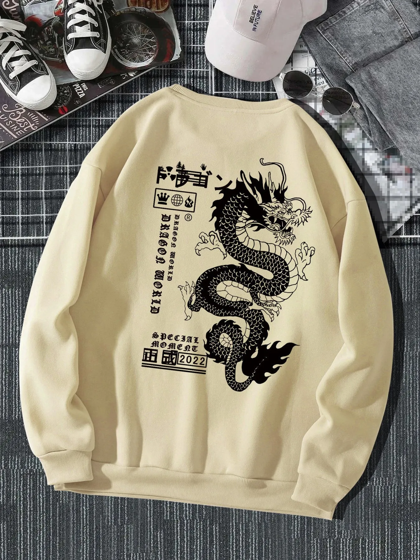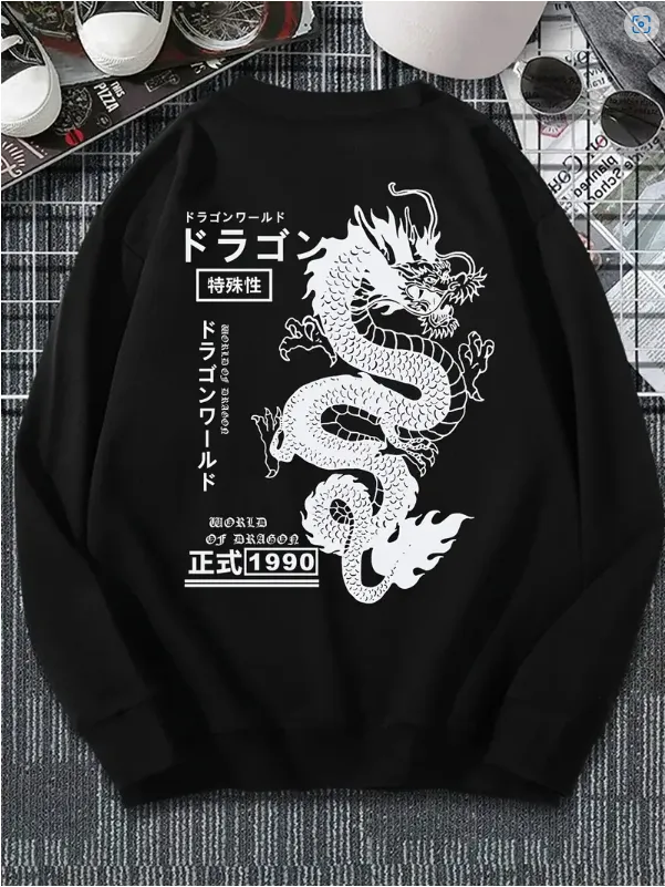 Autumn And Winter Loose Tokyo Dragon Print Crewneck