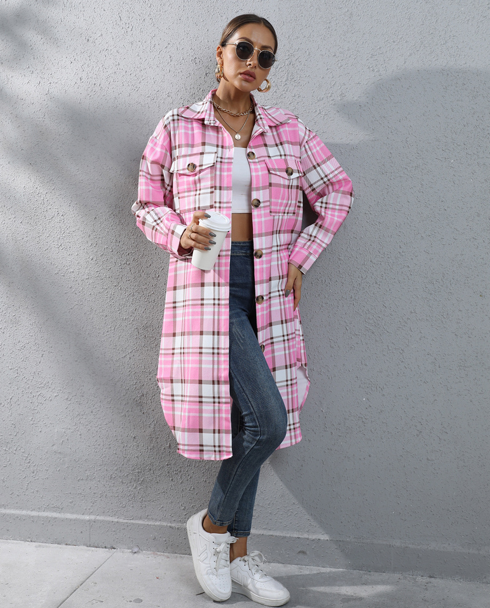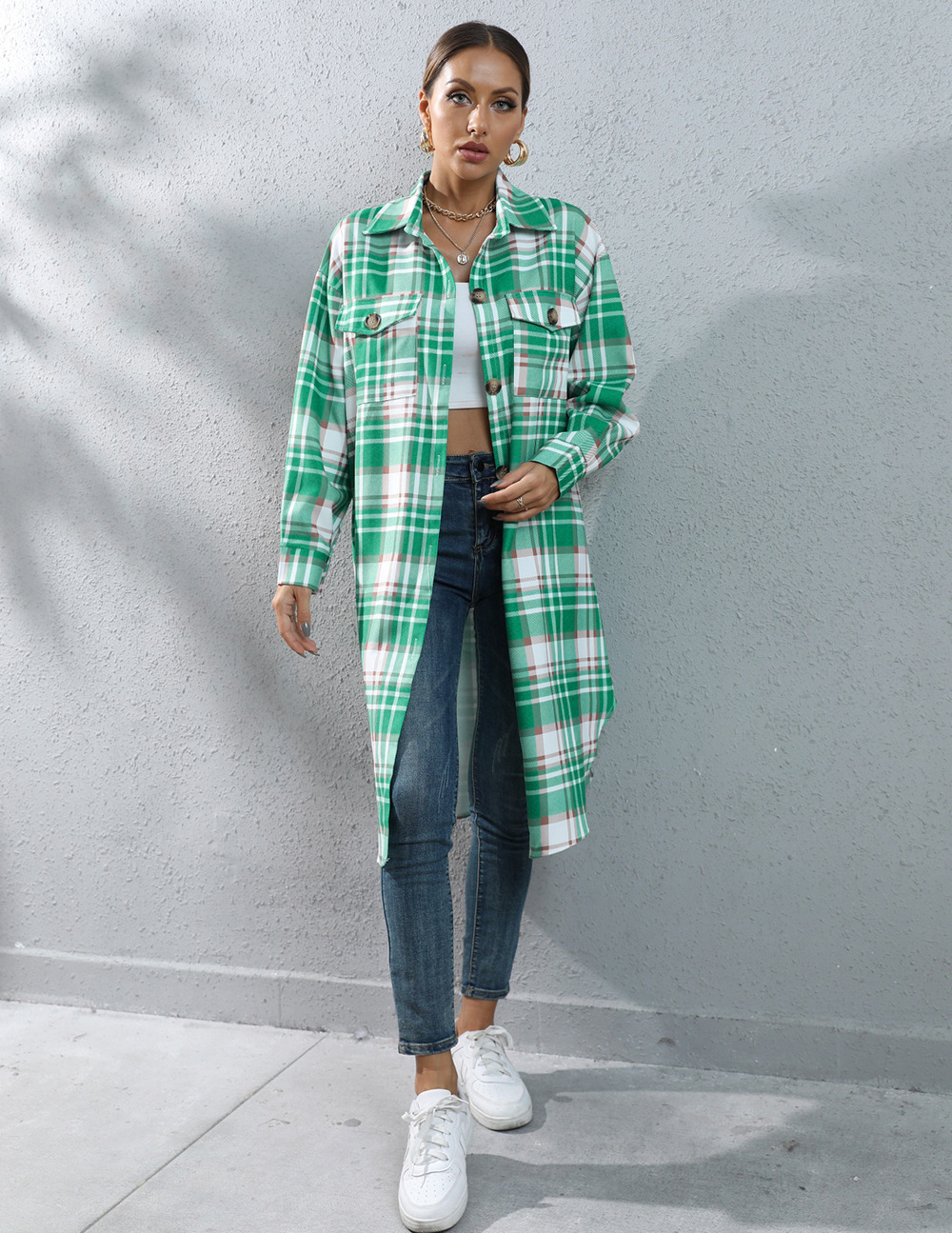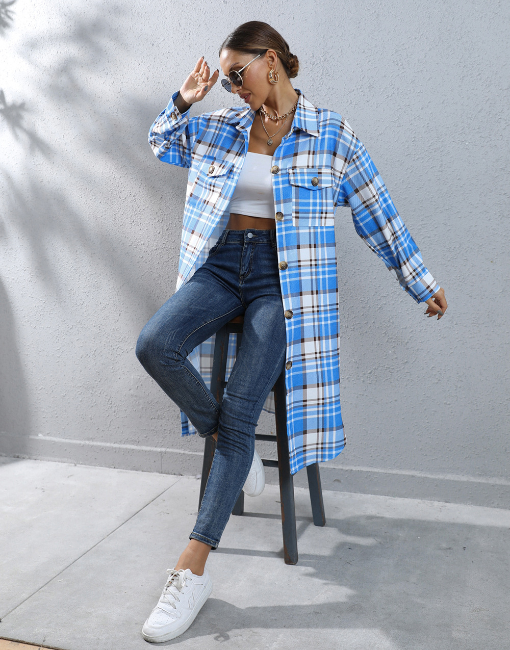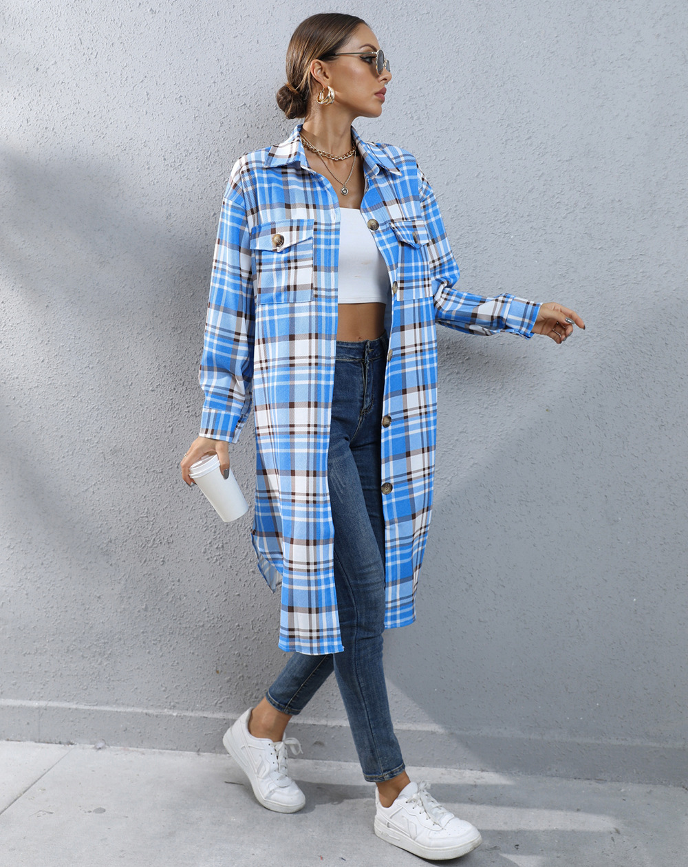 Autumn And Winter Plaid Single-breasted Long Trench Coat