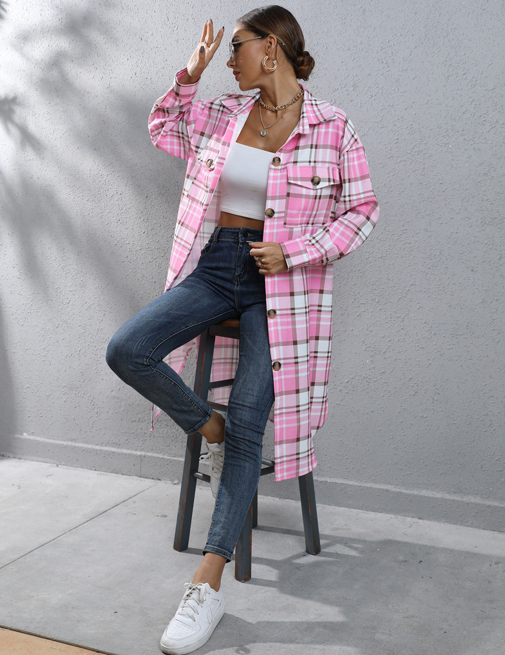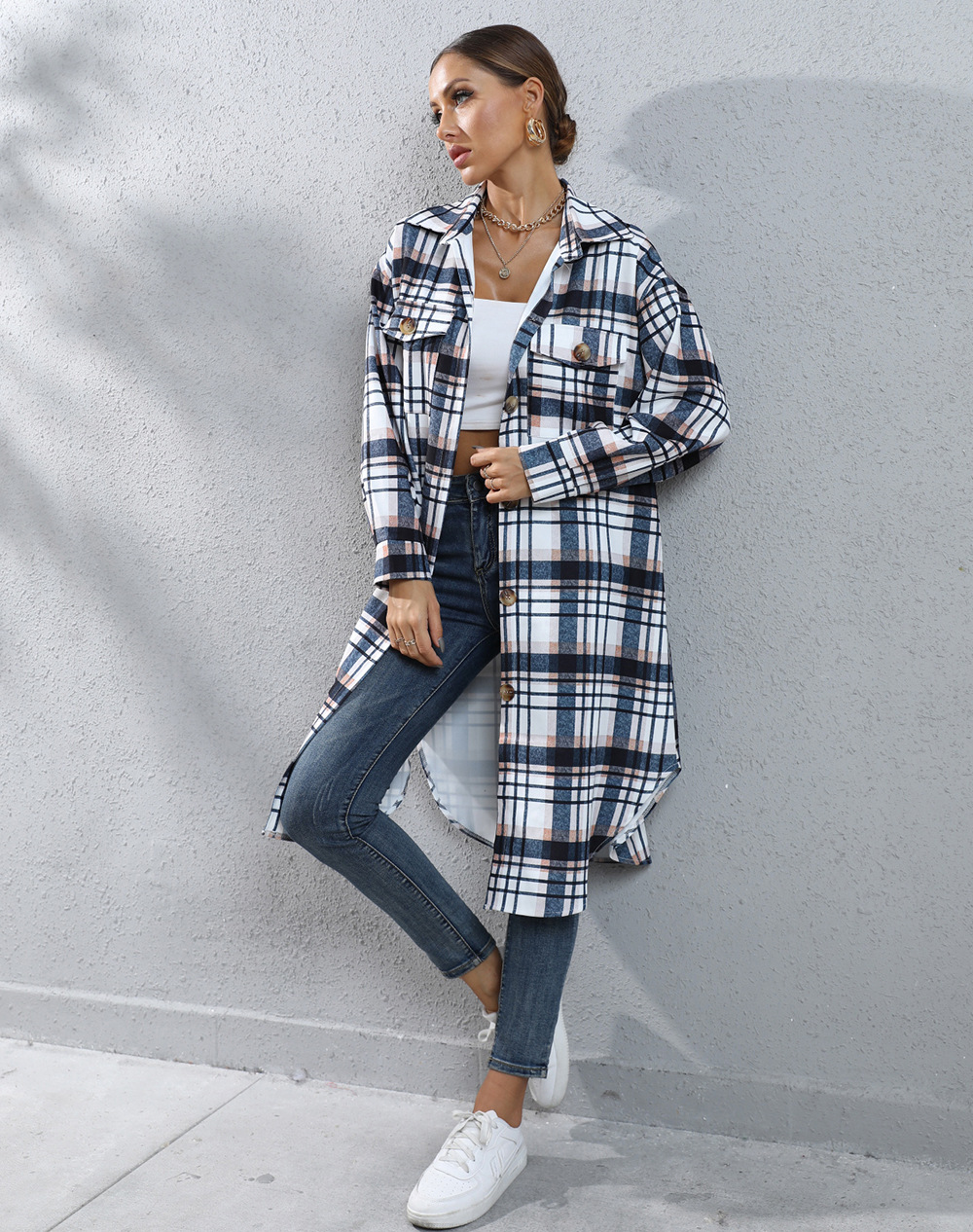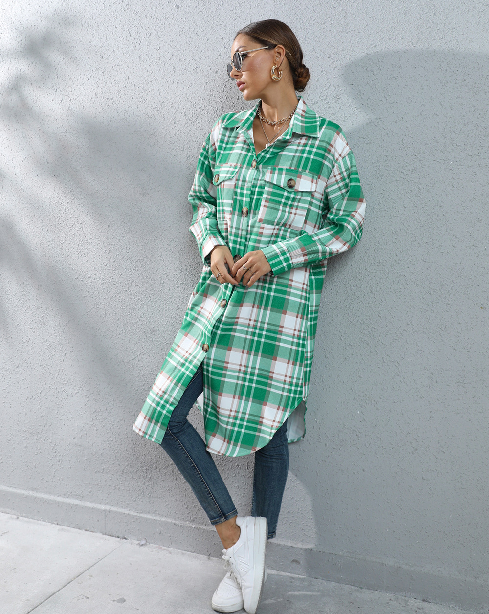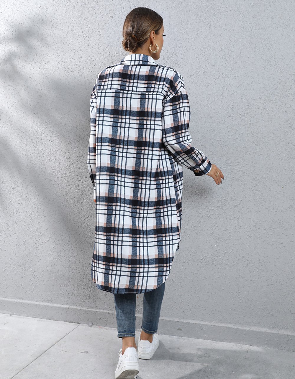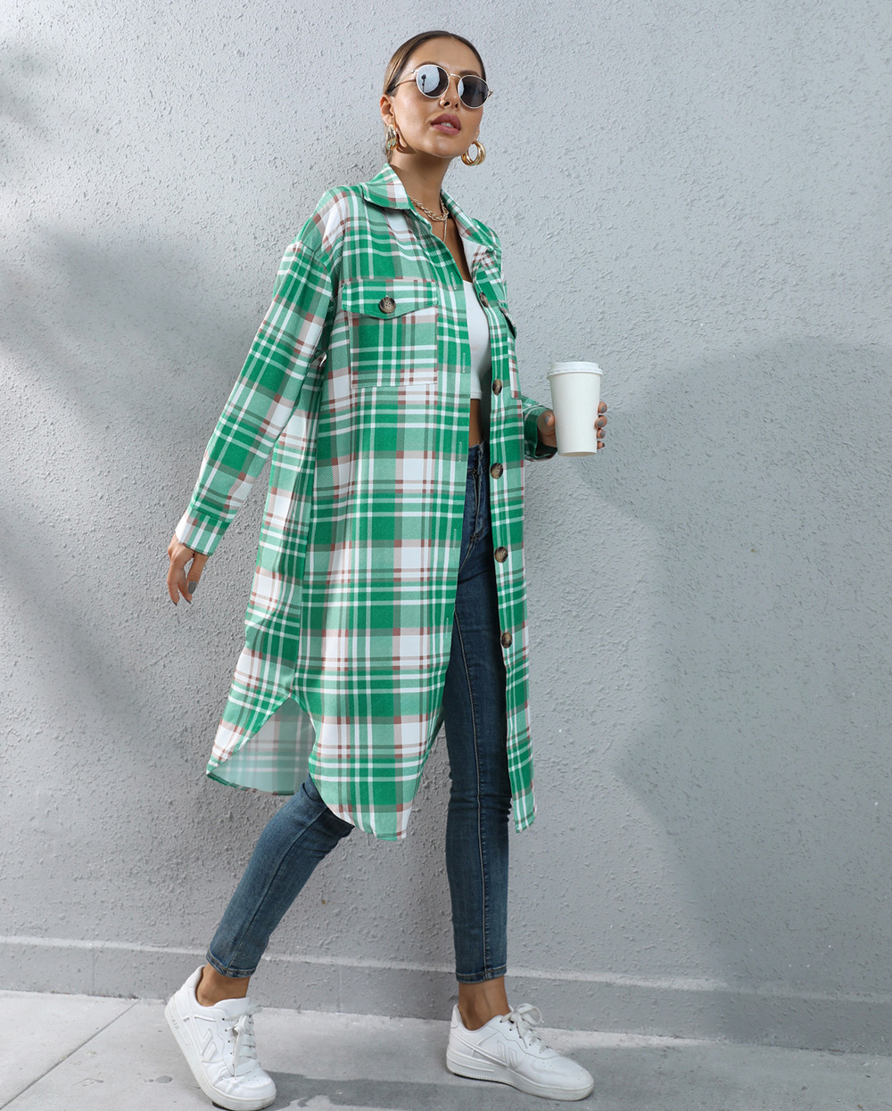 Autumn And Winter Plaid Single-breasted Long Trench Coat