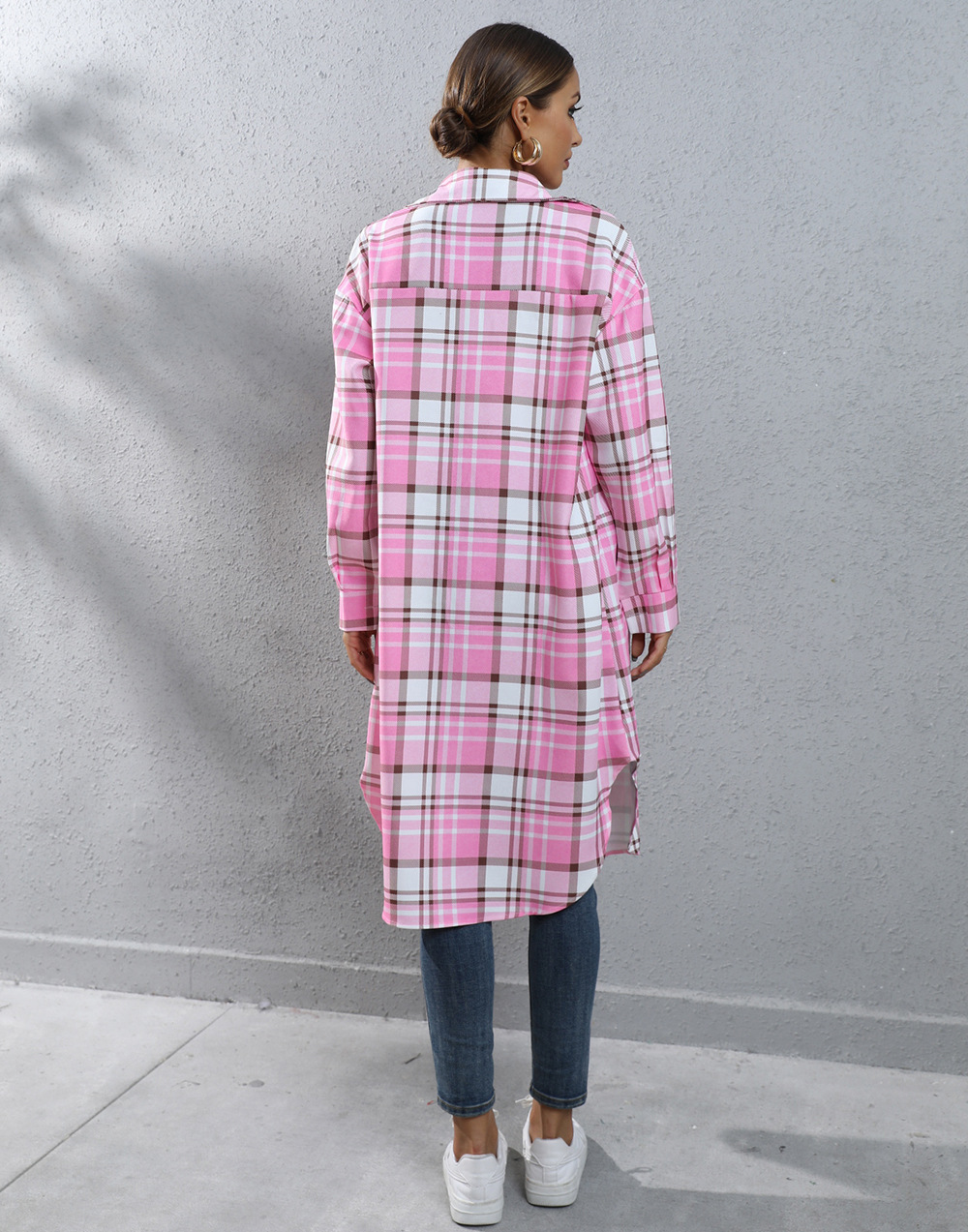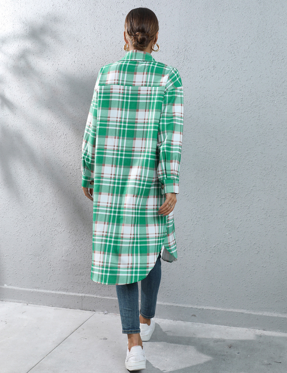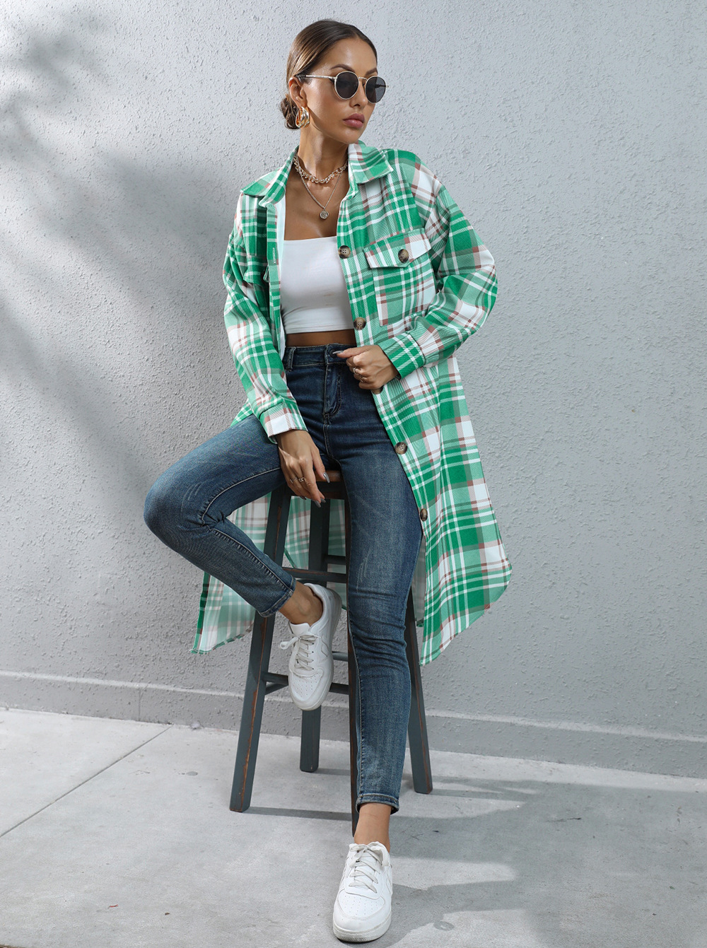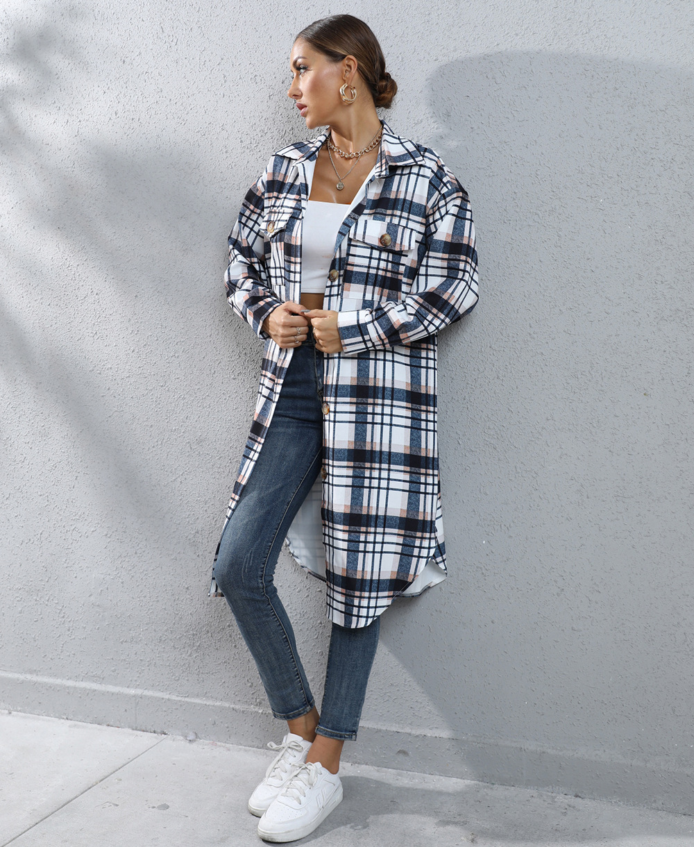 Autumn And Winter Plaid Single-breasted Long Trench Coat