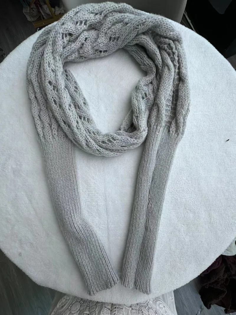 - Material: The Sweater Scarf with Sleeves Is Knitted with Two Needles Using an Openwork Stitch Simulating Spikes and Braids at the Top and Bottom, With a Vegan Wool Composed of Extremely Soft Fiber.
