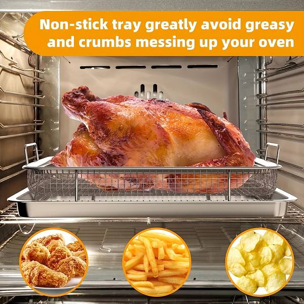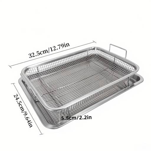 Crafted from premium 304 stainless steel, this set includes a rectangular drip tray and a matching grease-control roasting rack, making it ideal for chicken wings, fries, nuggets, vegetables, meats, and more. Perfect for home cooks, BBQ enthusiasts, restaurants, and outdoor camping.