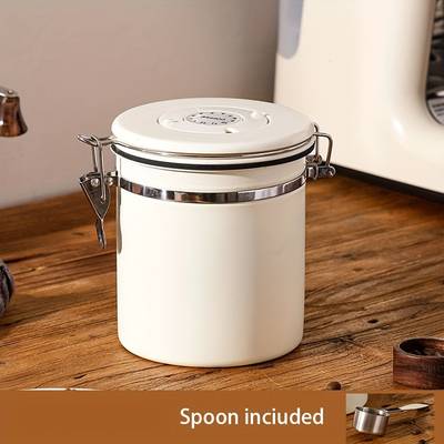 The one-way vent valve allows carbon dioxide to escape (a must for coffee beans), preserving freshness and flavour. The included 304 stainless steel spoon attaches conveniently for easy scooping.