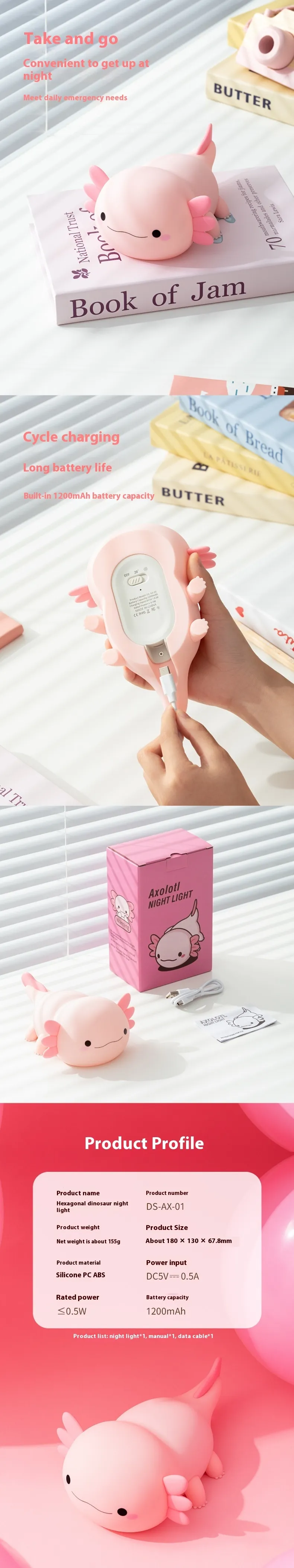 Designed for simplicity, the Axolotl Night Light is easy to use and suitable for everyday operation. It fits naturally on bedside tables, shelves, dressers, or desks without taking up much space. Its compact size makes it practical for small rooms and shared spaces.