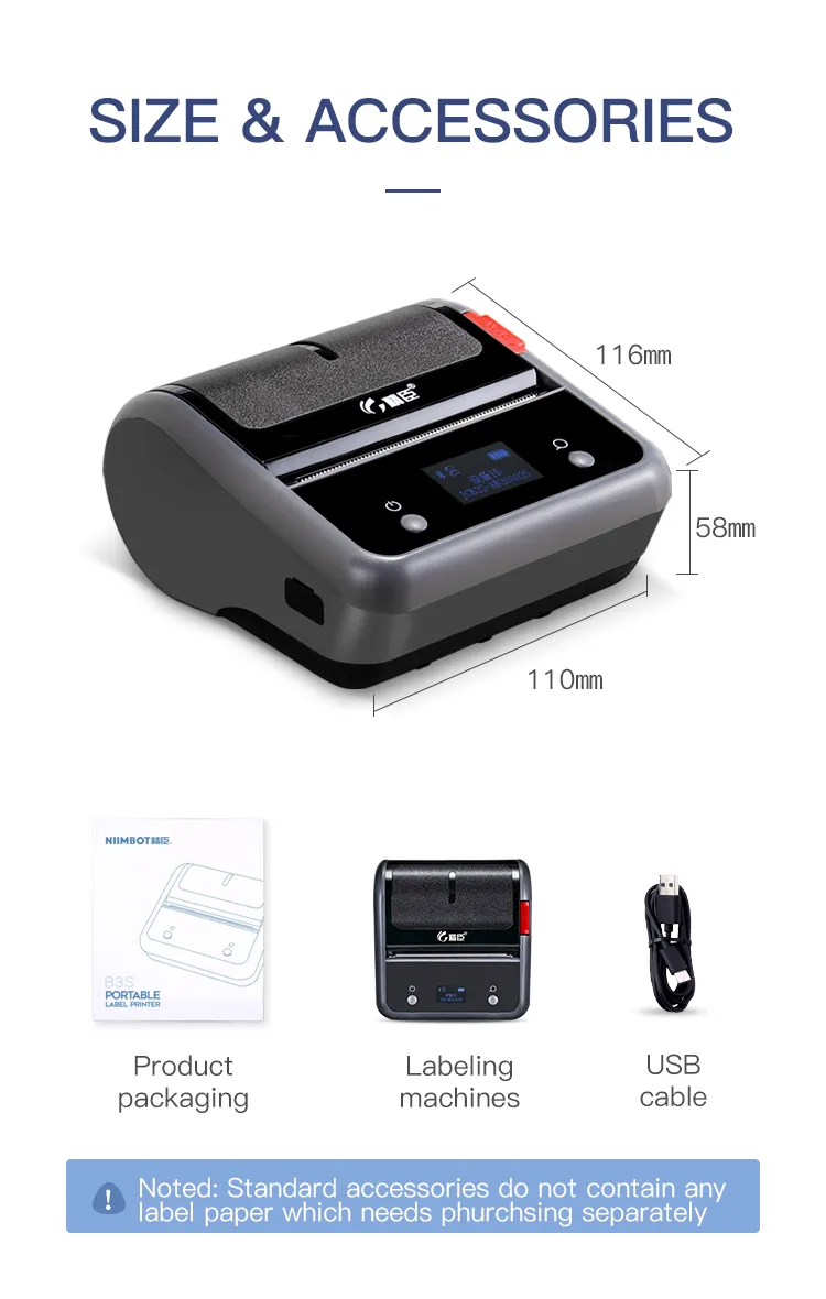 The B3S Commercial Smart Label Printer is designed to work with a variety of label sizes and types, making it a versatile solution for any business. From small product labels to large shipping labels, this printer can accommodate your specific requirements. It supports labels with a width ranging from 1 inch to 4.6 inches, allowing you to print labels for a wide range of applications, including: