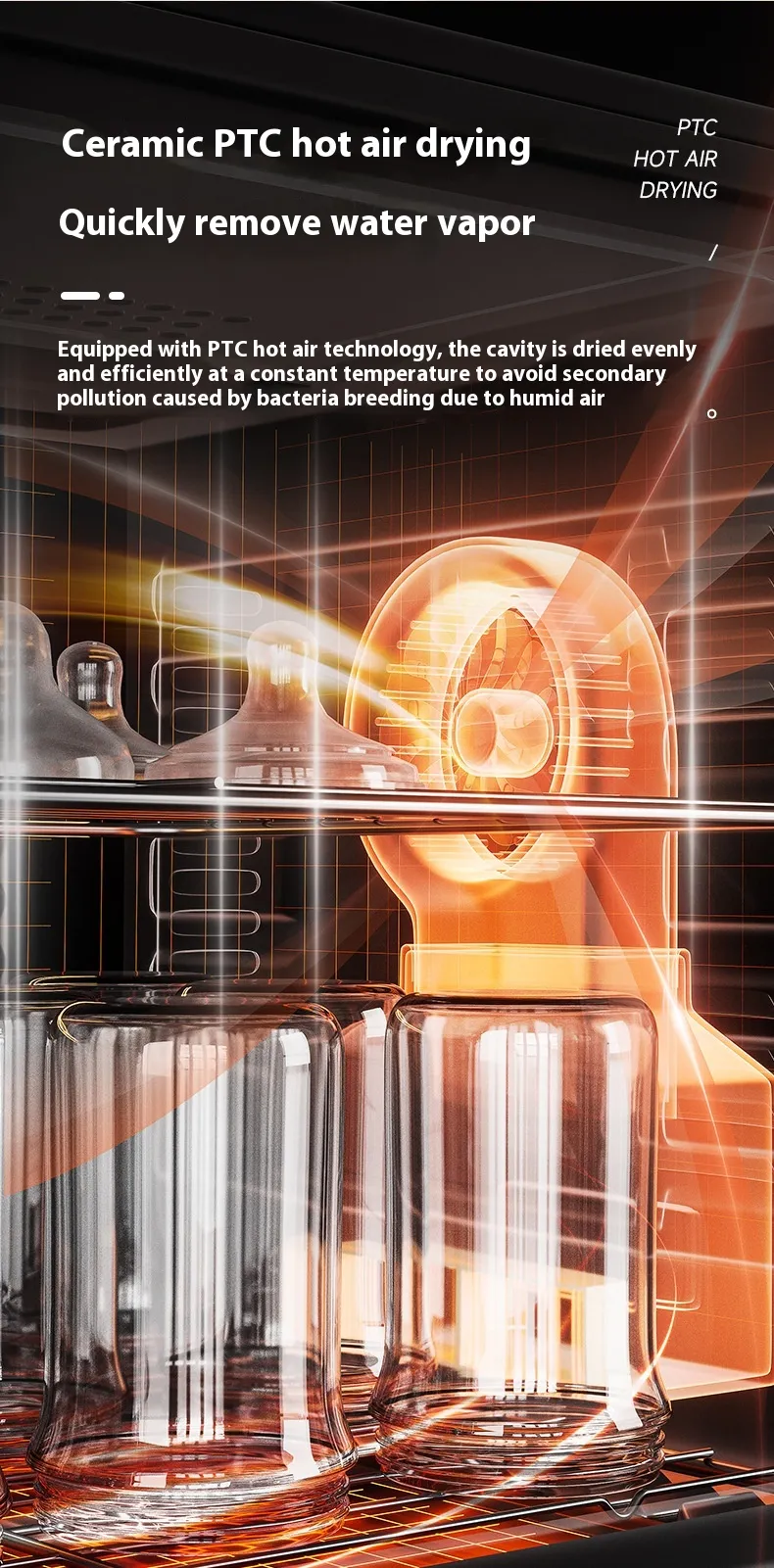 The one-touch smart control panel allows for easy operation with multiple sterilisation and drying modes. The quiet operation and auto shut-off features make it safe to use around your baby at any time of day. Built with durable, non-toxic materials, this steriliser is both safe and energy-efficient.