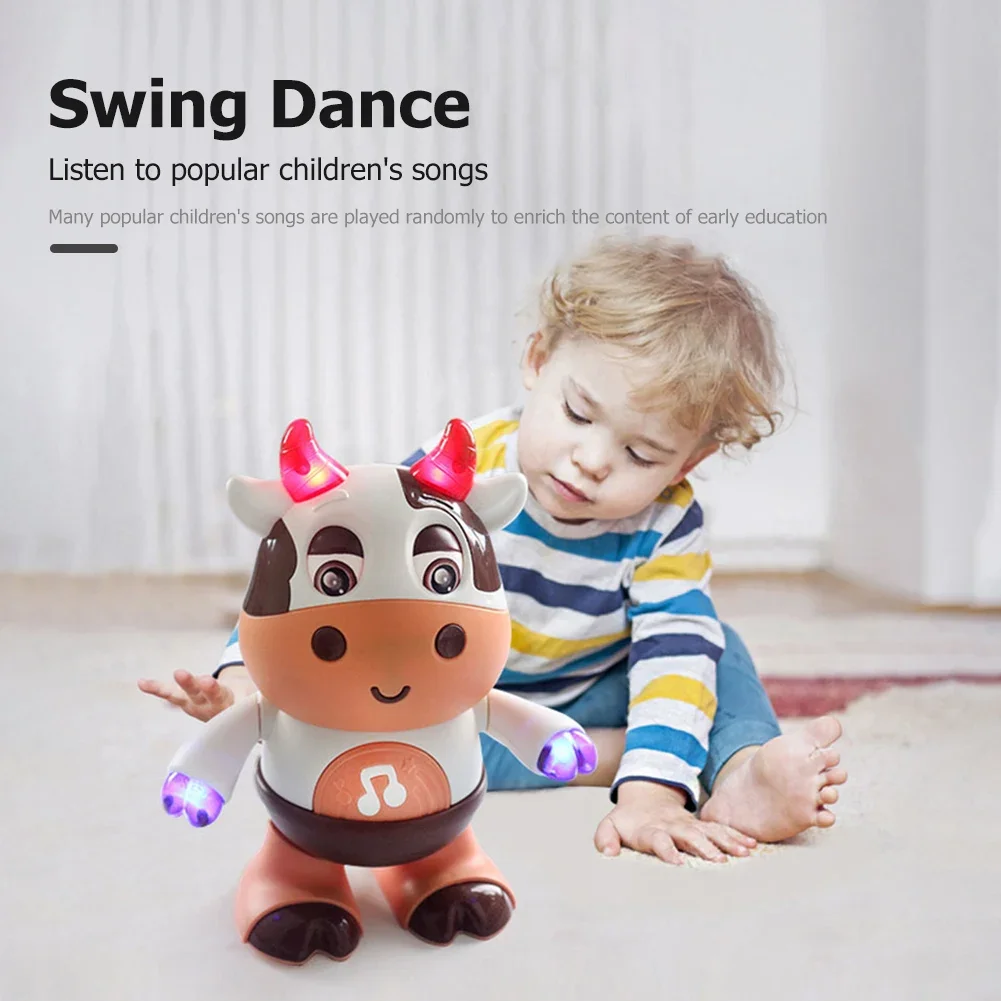 Baby Cartoon Cow Electronic Pet Toy - Dancing, Walking, Light and Music Interactive Educational Toy