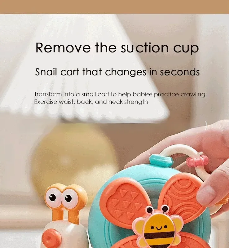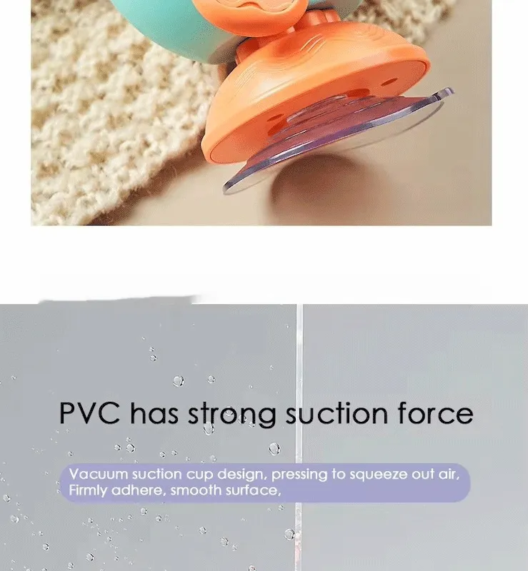 The suction base ensures that the toy stays securely in place during mealtime, preventing it from sliding off the table or being knocked over. This feature allows your baby to interact with the toy without it falling, giving parents peace of mind while their child enjoys their meal. The strong suction base is designed to stick firmly to most flat surfaces, ensuring the toy remains in place for the duration of mealtime.
