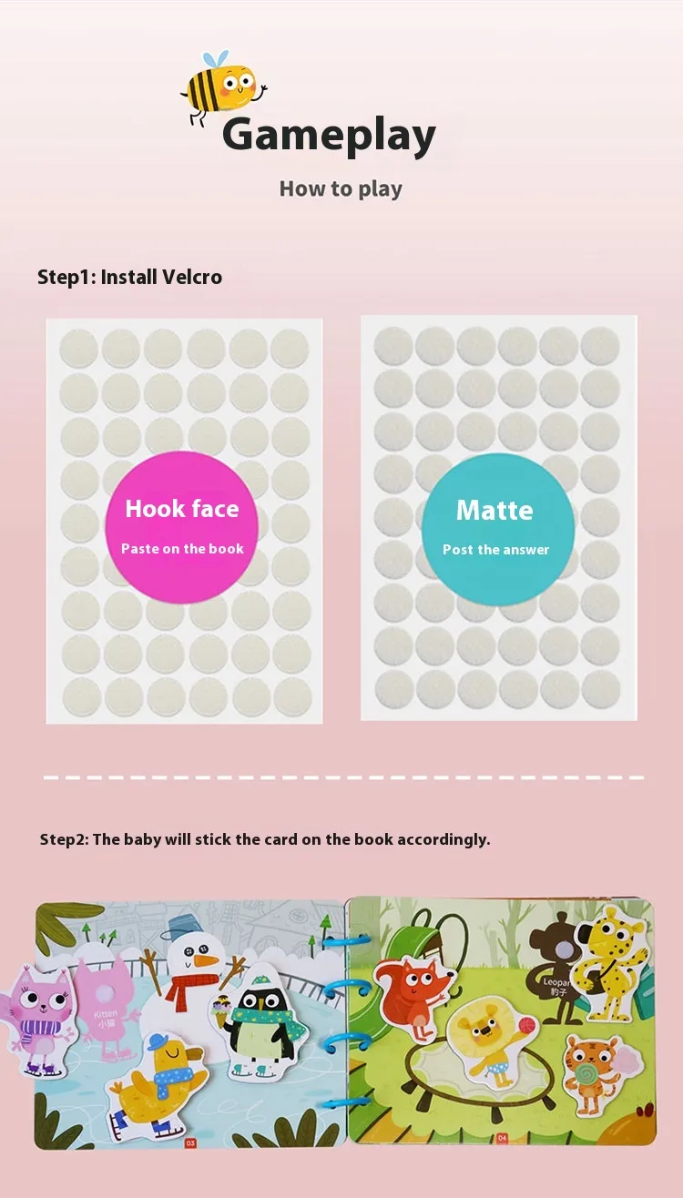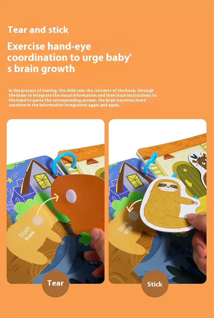 Each page of this quiet book is thoughtfully crafted with hands-on activities that encourage exploration and problem-solving. Babies can touch, pull, flip, and interact with colorful elements to enhance their learning experience.