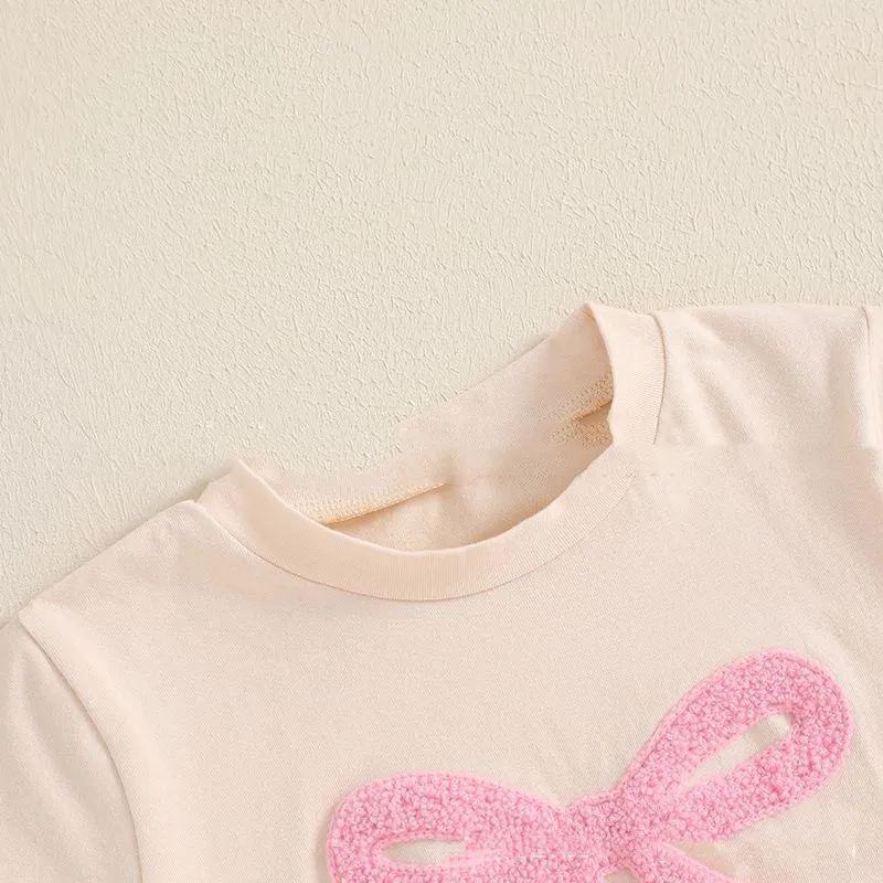 Baby Girl Bow Towel Embroidery Short Sleeve Triangle Rompers – Soft, Adorable, and Perfect for Your Little One