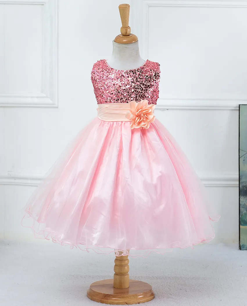 flower girls, weddings, and other formal occasions, offering a sparkling look that enhances the magic of any event. The dress features a