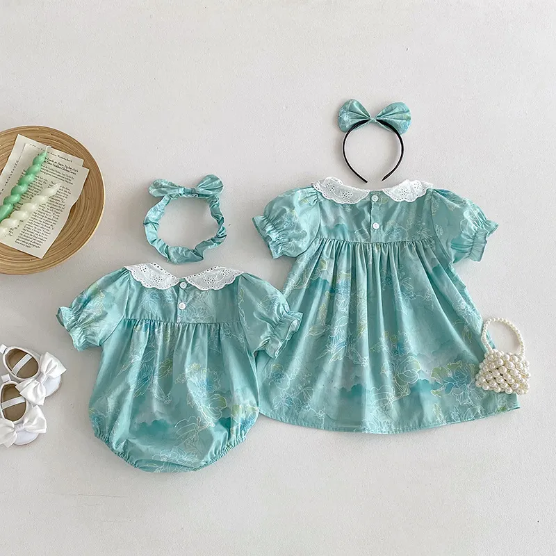 Introduction to the Baby Triangle Rompers Girl Puff Sleeve Dress
