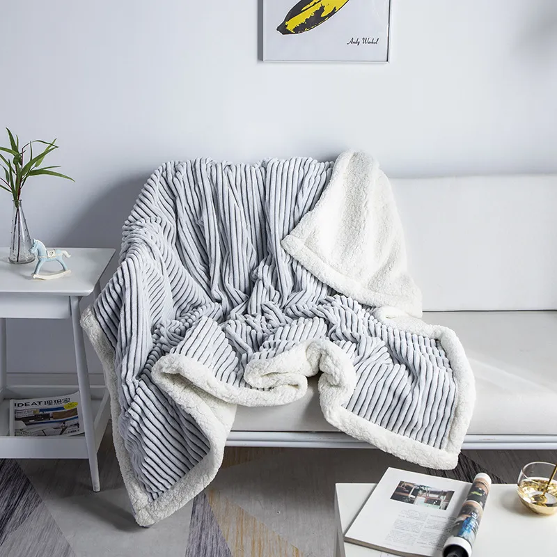 Back Printed Lamb Wool Nap Leisure Sofa Warm Blanket Plain