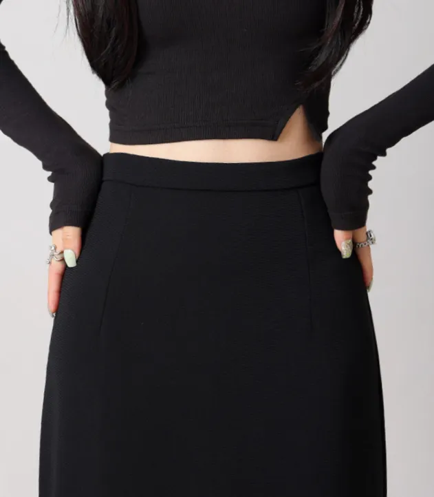 Back Slit Straight Tube Slimming High Waist Black Long Skirt