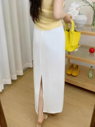 This skirt is designed to offer the perfect balance of style and practicality. The high waist and straight tube design give it a timeless appeal, while the back slit adds an element of modernity and sophistication. It’s the ideal piece for women who appreciate both elegance and comfort.