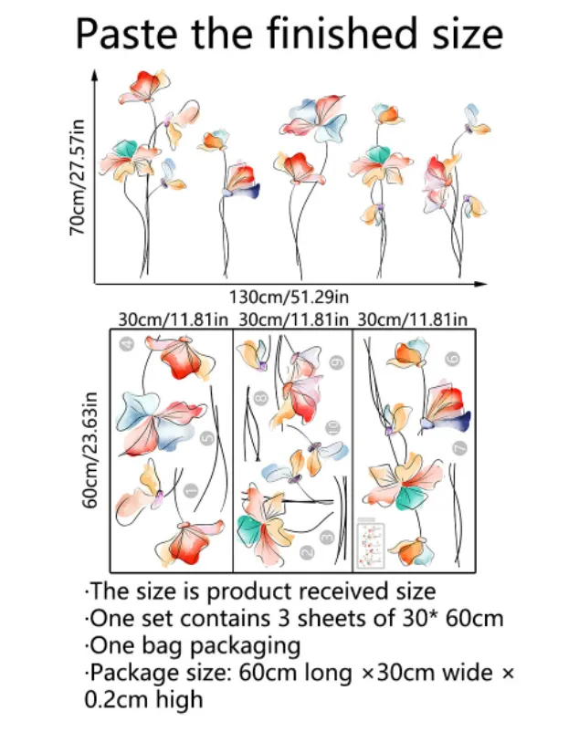 Made from premium-quality vinyl, our Background Wall Home Decoration Wall Stickers are designed to last. They are fade-resistant and washable, ensuring they remain vibrant and in top condition for years. No need to worry about peeling edges or fading colors—these stickers are built to stay beautiful.