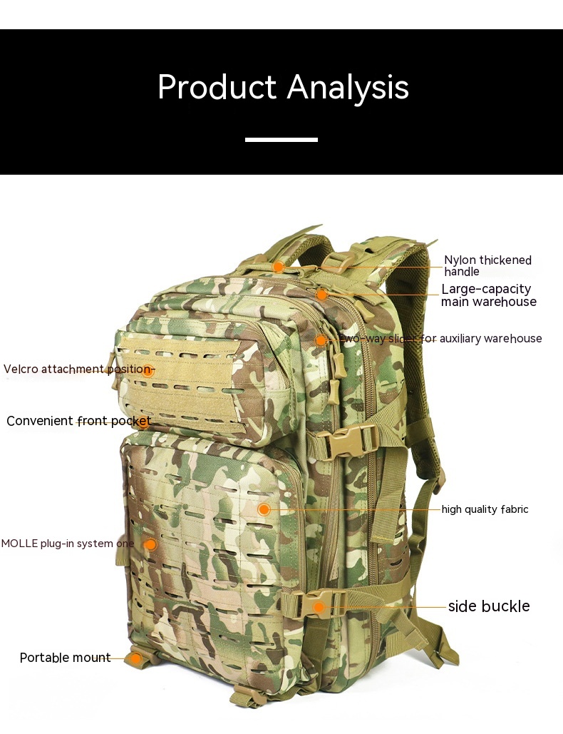 Perfect for mountain climbing, hiking, camping, and other outdoor adventures. This backpack's multifunctional design makes it suitable for a wide range of activities, ensuring you are well-prepared for any journey.