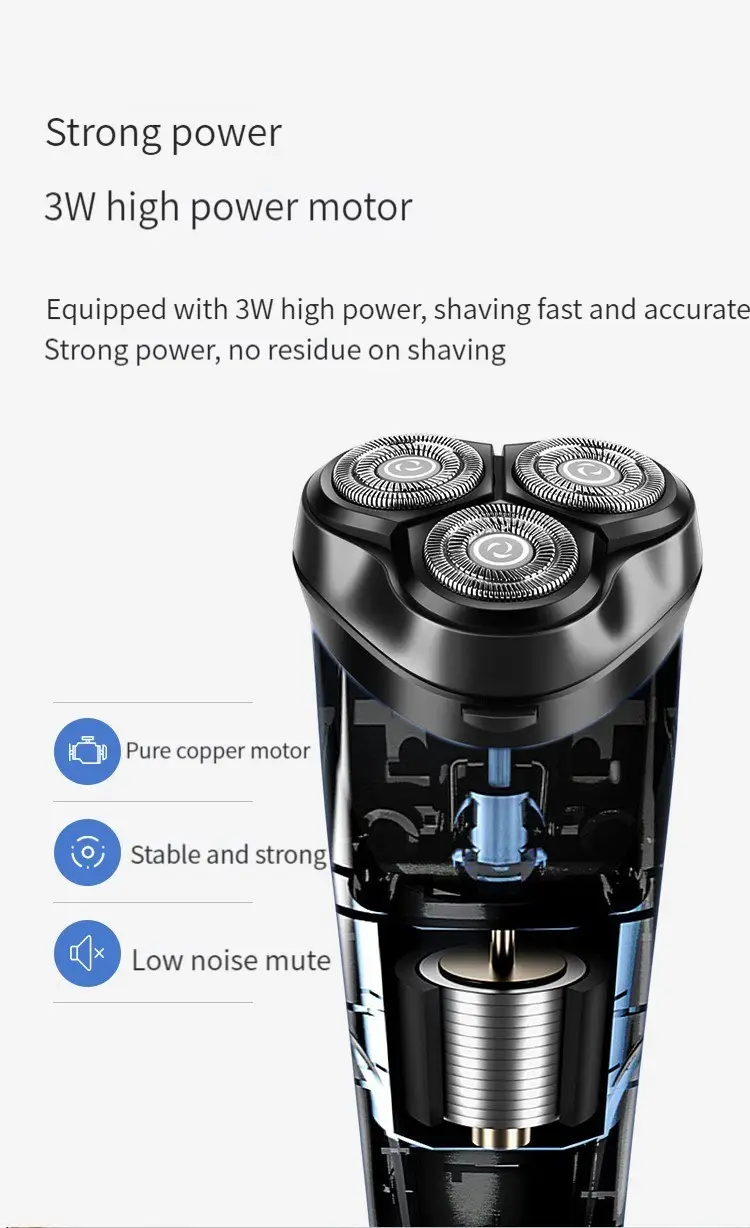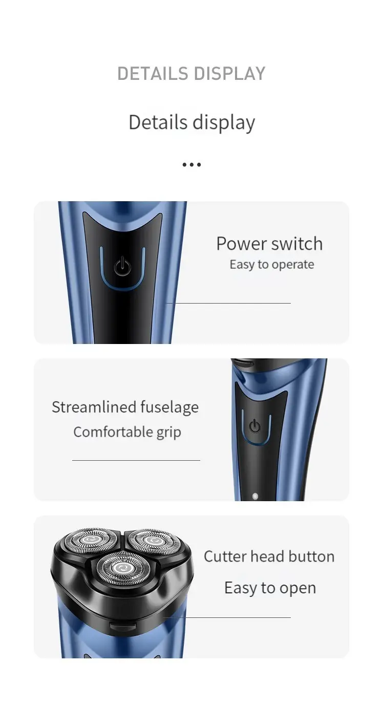 Power Mode: USB ChargingOperating Voltage: ≤36VNumber Of Razors: 3Number Of Levels: 1Cleaning Method: Washable RazorRazor Material: Stainless SteelProduct Type: Floatingbattery life: >60 MinutesBrand: BALASHOVBattery Properties: Rechargeable BatteryRechargeable Battery: Lithium Battery-18650 SeriesFeatures: 1. Strong fit: 4D three-dimensional floating blade that fits the contours of the face. 2. Good shaving effect: Double ring veneer knife net, clean shaving without residue. 3. Strong comfort: Shaving while grinding makes shaving more comfortable. 4. Convenient to use: USB charging, can be used while charging. 5. Strong battery life: 1.5 hours of charging, with strong battery life. Two minutes of daily use can last for 30 days.