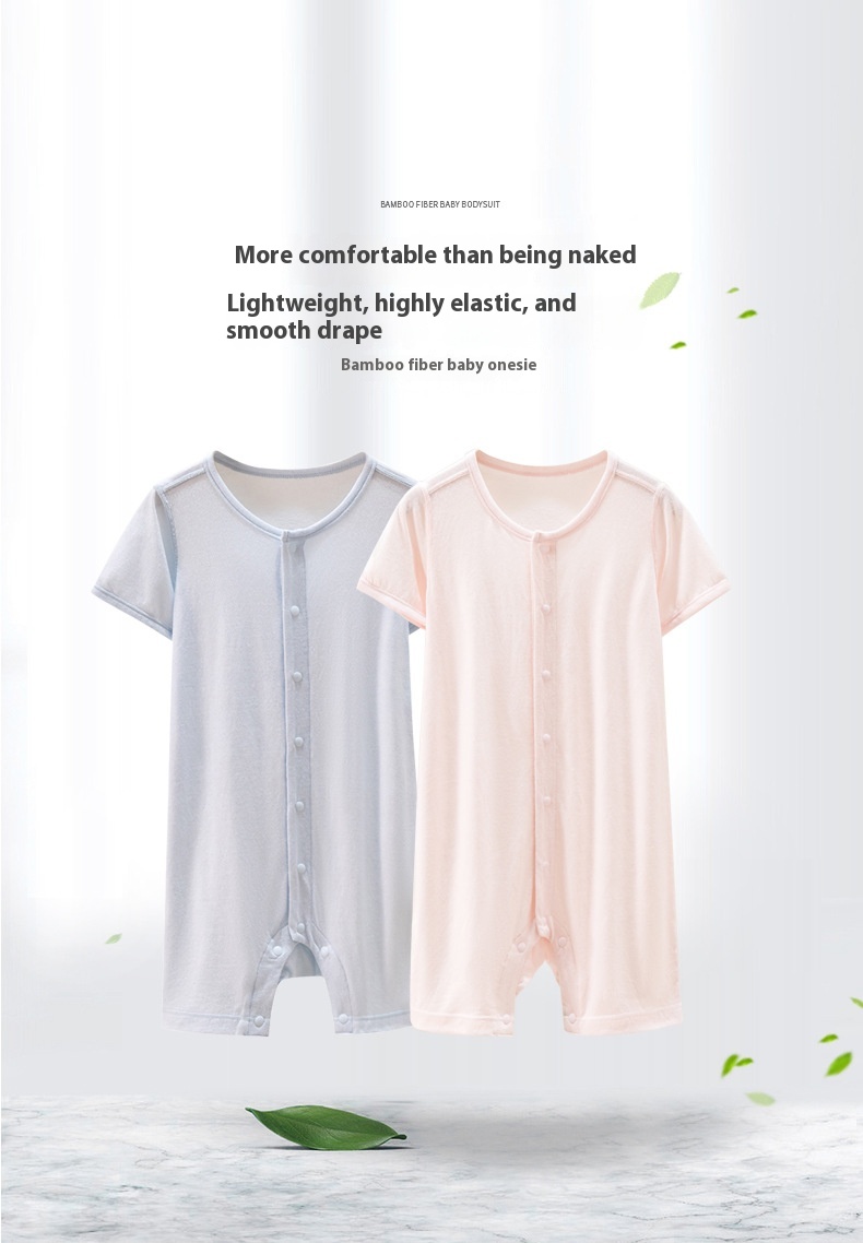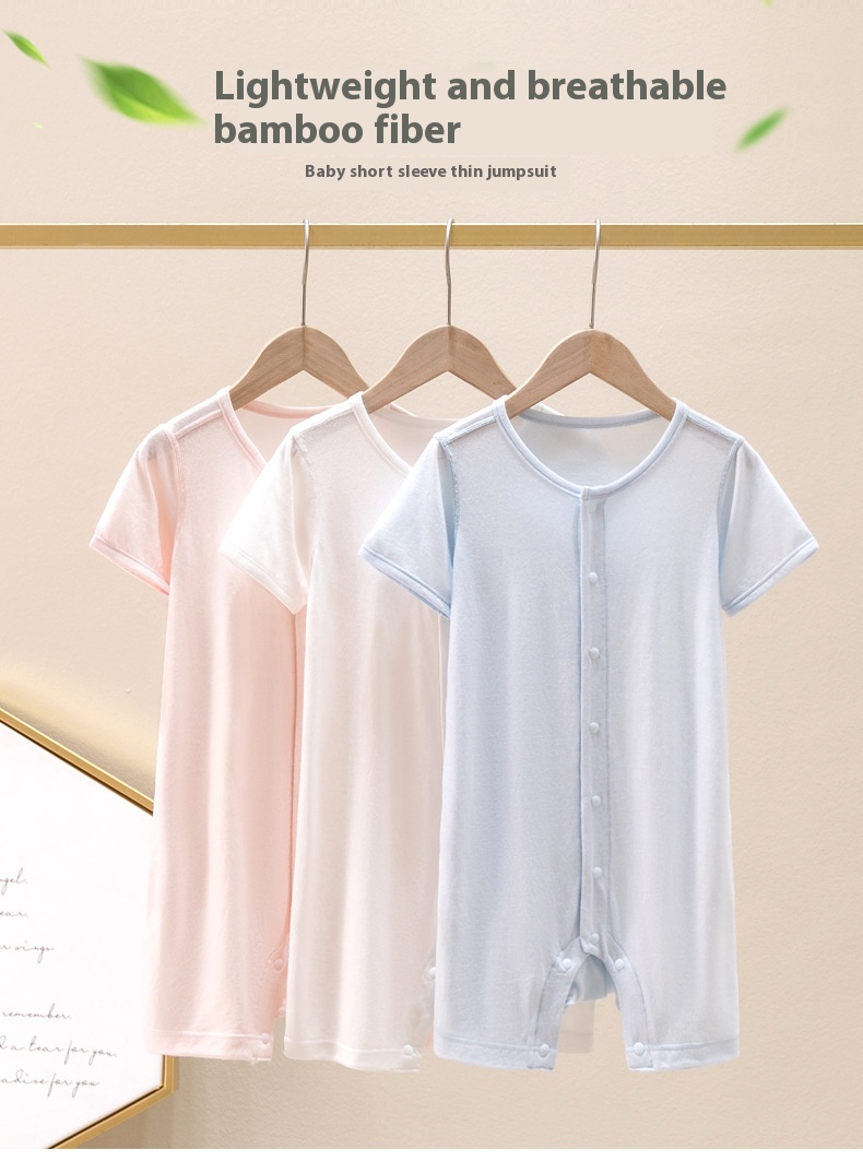 Bamboo Fiber Clothes For Babies Thin Baby Short Sleeve Jumpsuit
