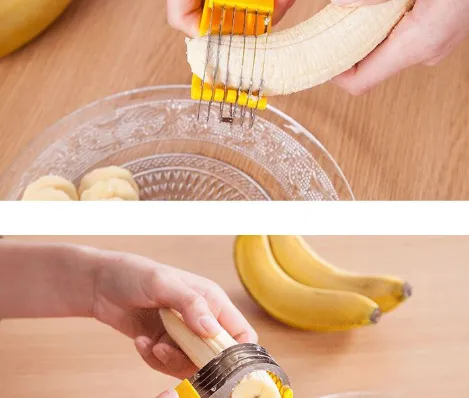 Constructed from durable, food-safe materials, the slicer features multiple evenly spaced cutting slots that glide smoothly through bananas without crushing or bruising the fruit. The design ensures clean cuts in a single motion, reducing mess and preparation time. Its lightweight structure makes it easy to handle, even for children under supervision.