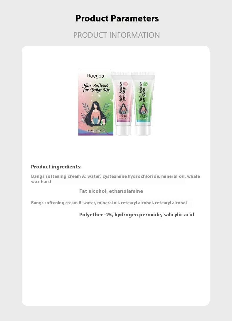 Product Capacity: bangs softening care cream A30ml * 1 bangs softening care cream B30ml * 1