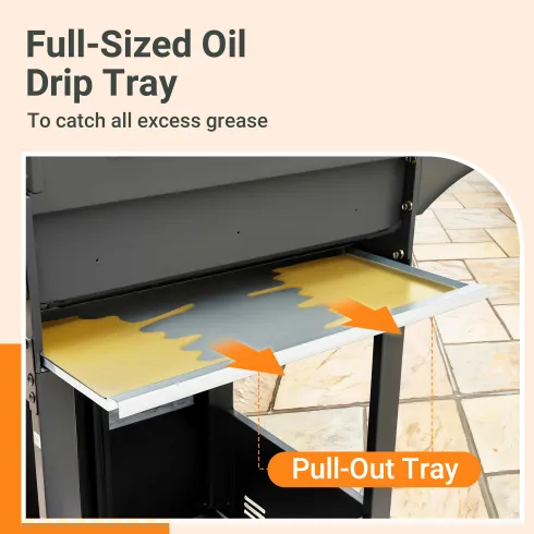 - Additional Prep Space: Side table on the right side offers more preparation space for seasonings and grilling tools; the lid of side burner functions as a table for added workspace.