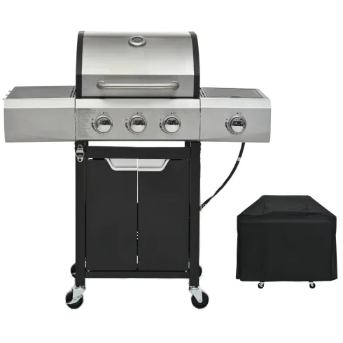 Product Name:Propane Grill 3 Burner Barbecue Grill Stainless Steel Gas Grill with Side Burner and Cover for Outdoor BBQ, Camping