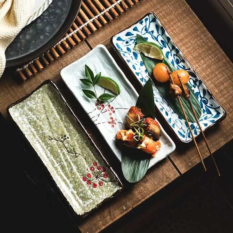 Barbecue Plate Rectangular Sushi Ceramic Plate