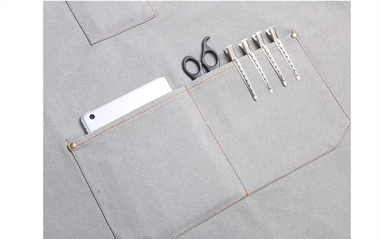 The apron includes multiple pockets and loops for organizing tools, allowing stylists to work efficiently while keeping essential items within reach.