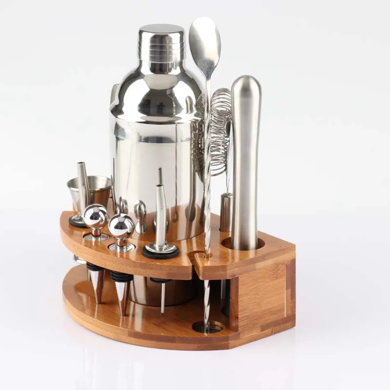Bartender 12-piece Cocktail Family Bartending Tool Set With Semi-circular Bamboo Base